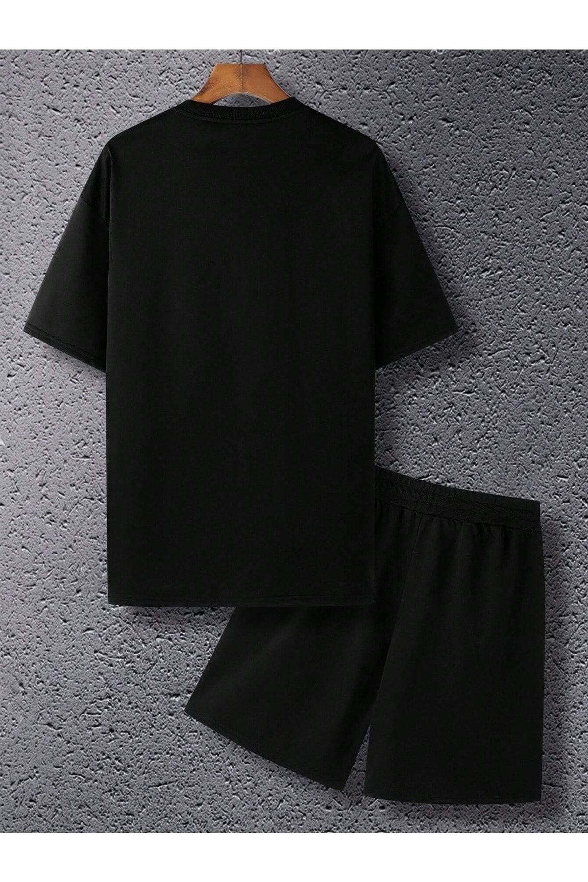 1998 Usa T-Shirt Şort - Siyah Alt Üst Kombin Şort Tişört Takım Baskılı Oversize Bisiklet Yaka