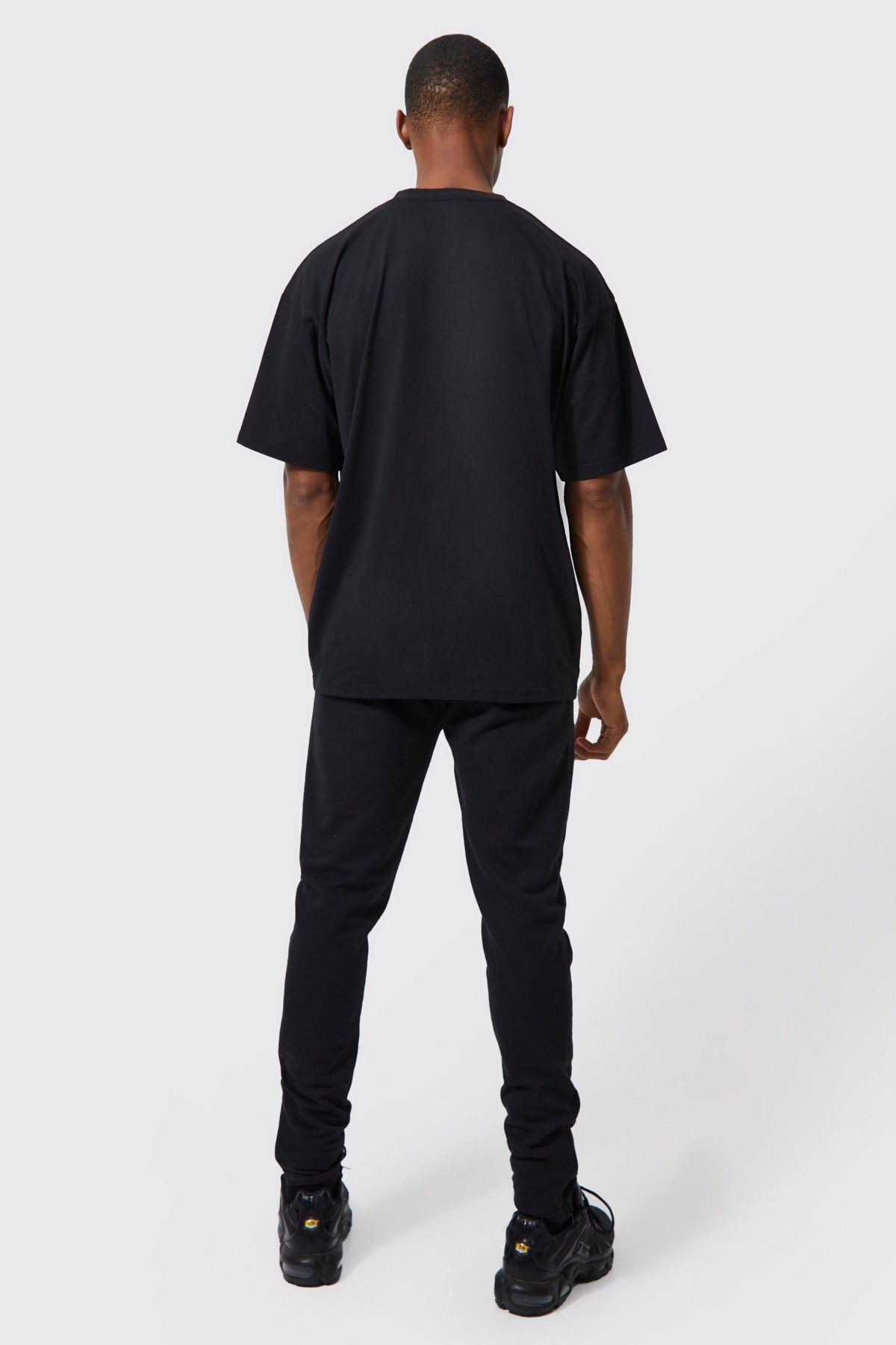 2'li Man Yazı Süprem T-Shirt - Siyah Beyaz Baskılı Oversize Bisiklet Yaka Kısa Kol Tişört