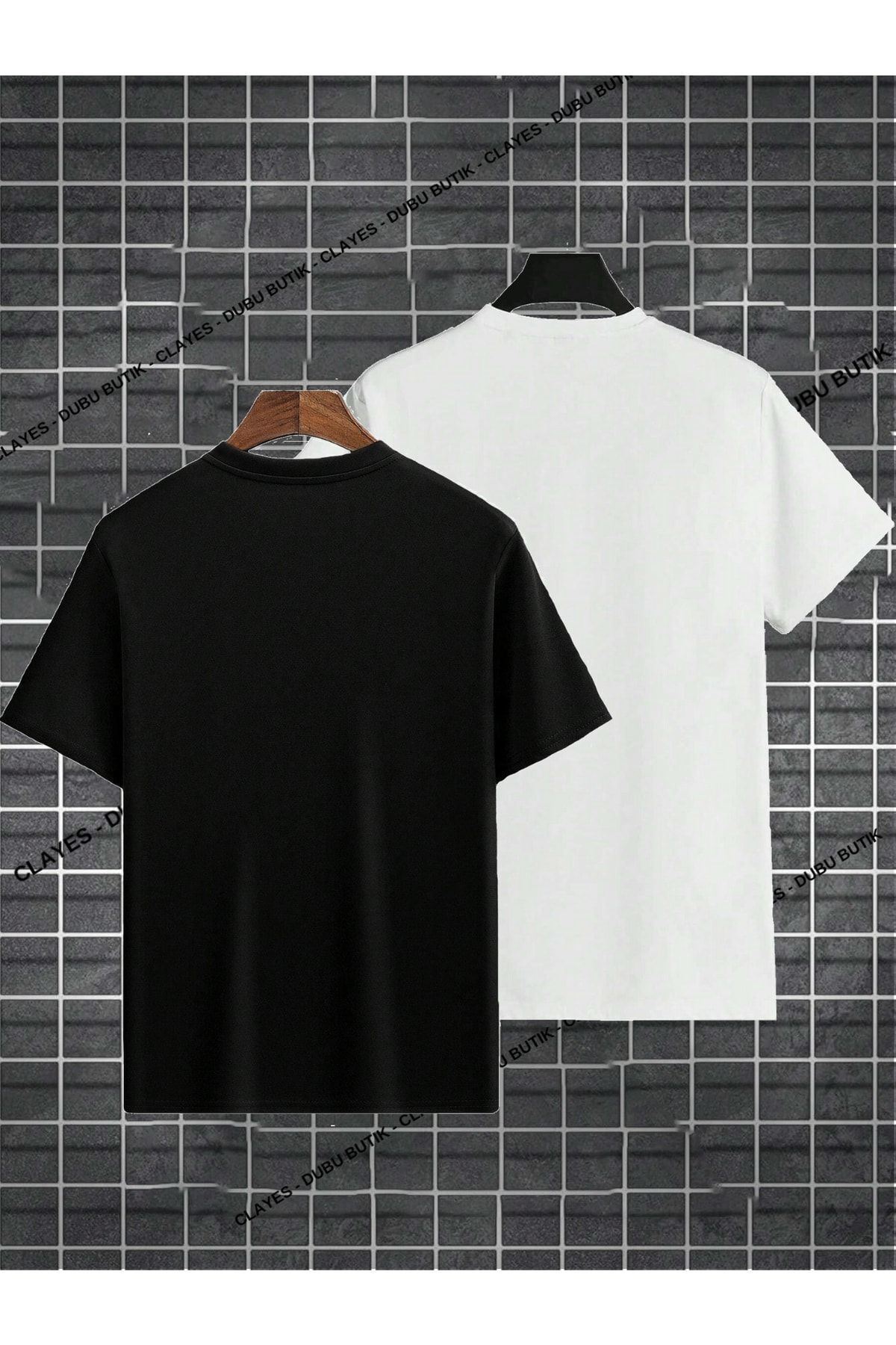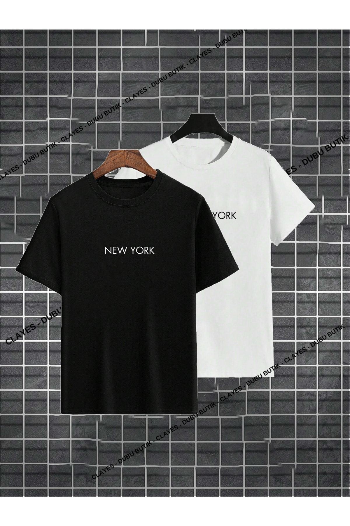 2'li New York T-shirt - Siyah Beyaz Baskılı Oversize Bisiklet Yaka Kısa Kol Tişört