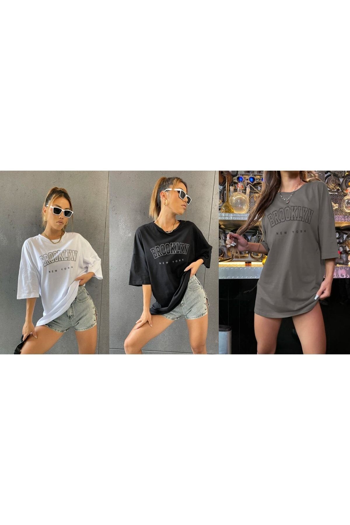 3 Lü Tişört Takımı Brooklynbaskılı Oversize Unisex