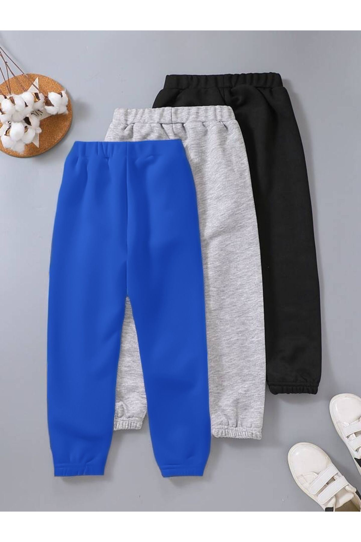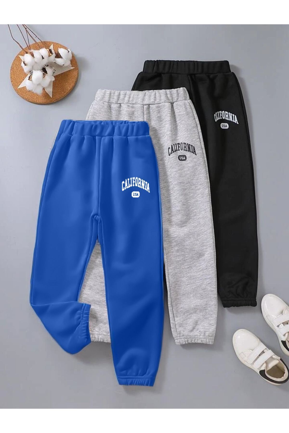 3'lü California Eşofman Altı Jogger - Sax Mavi Gri Siyah Lastik Paça Yüksel Bel