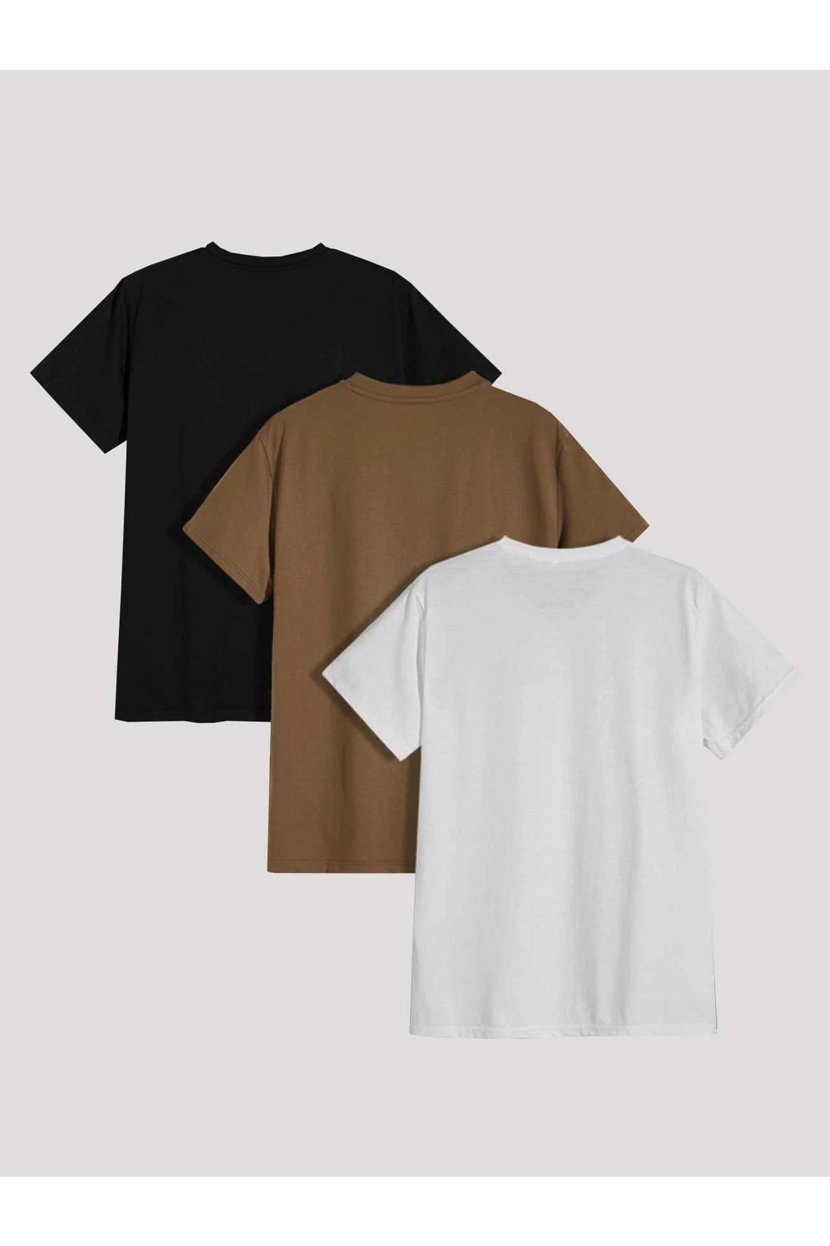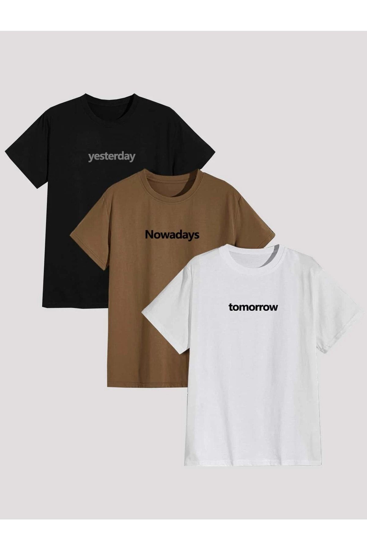 3'lü Days T-shirt - Siyah Vizon Beyaz Baskılı Oversize Bisiklet Yaka Kısa Kol Tişört