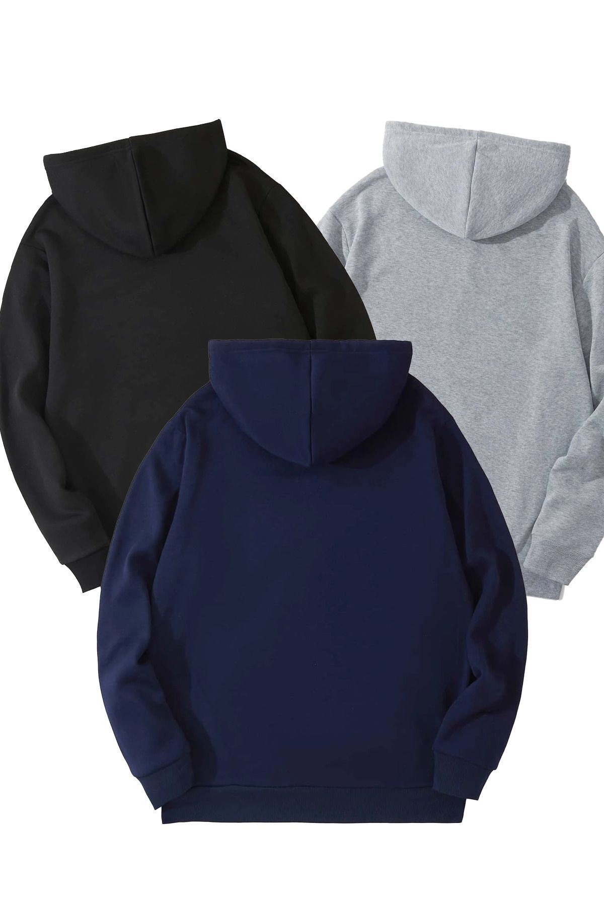 3'Lü Düz Basic Kalın Kışlık Sweatshirt - Siyah Gri Lacivert Oversize Kapüşonlu