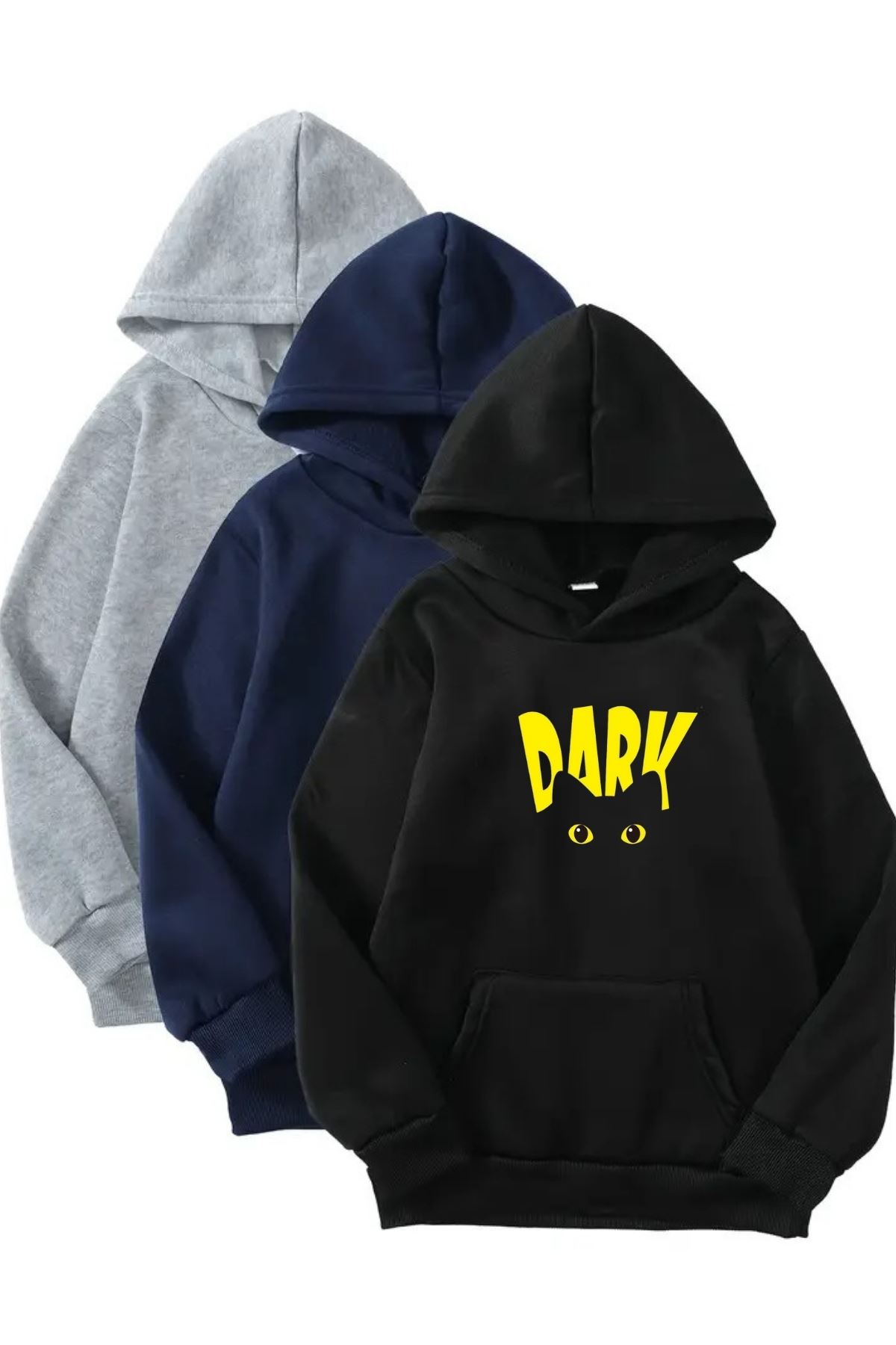 3'lü Kapüşonlu Sweatshirt Seti- Dark Kedi Baskılı- Siyah, Lacivert, Gri - Kışlık Şardonlu Kumaş