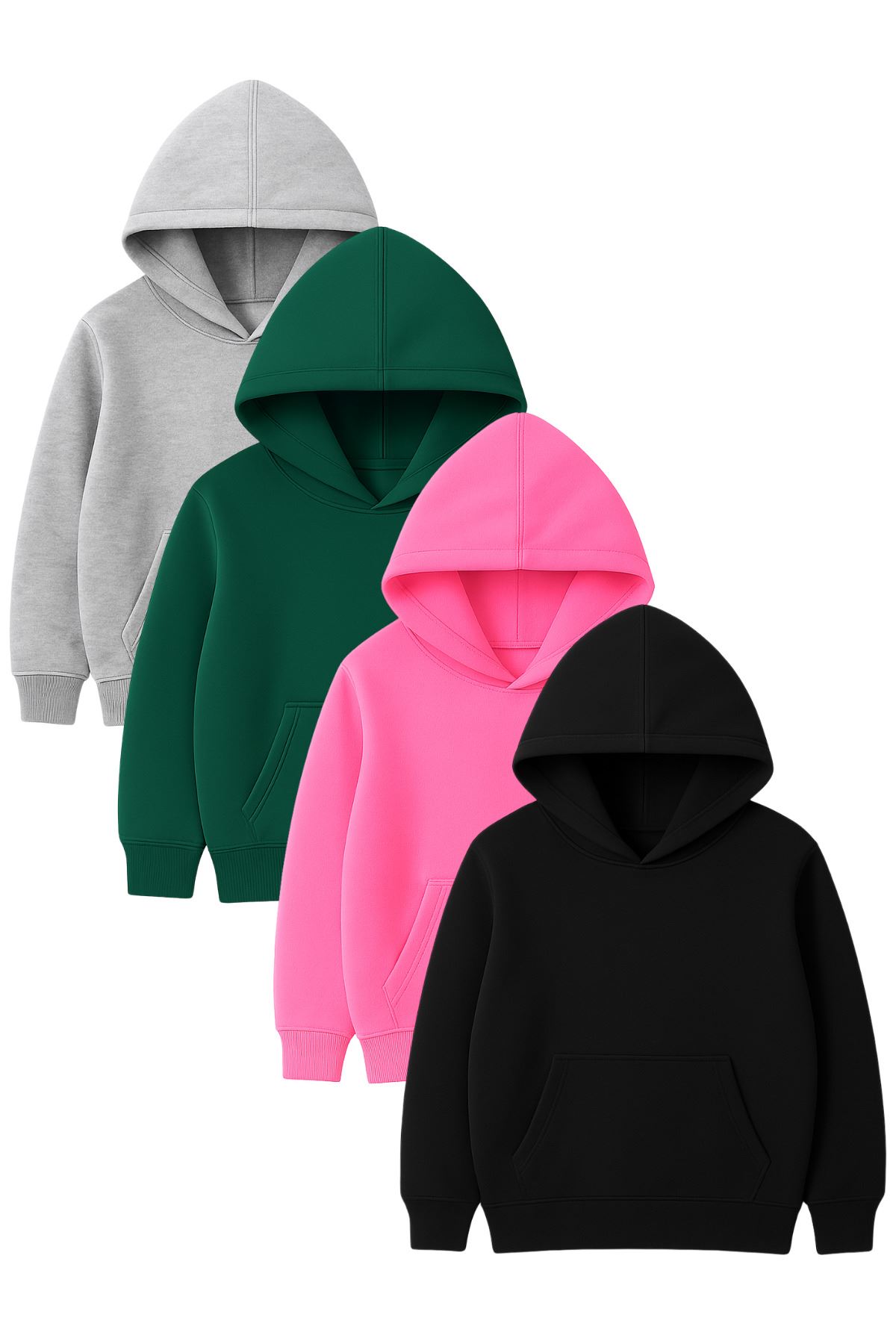 4'lü Kapüşonlu Basic Sweatshirt Seti - Düz Kışlık Şardonlu Kumaş