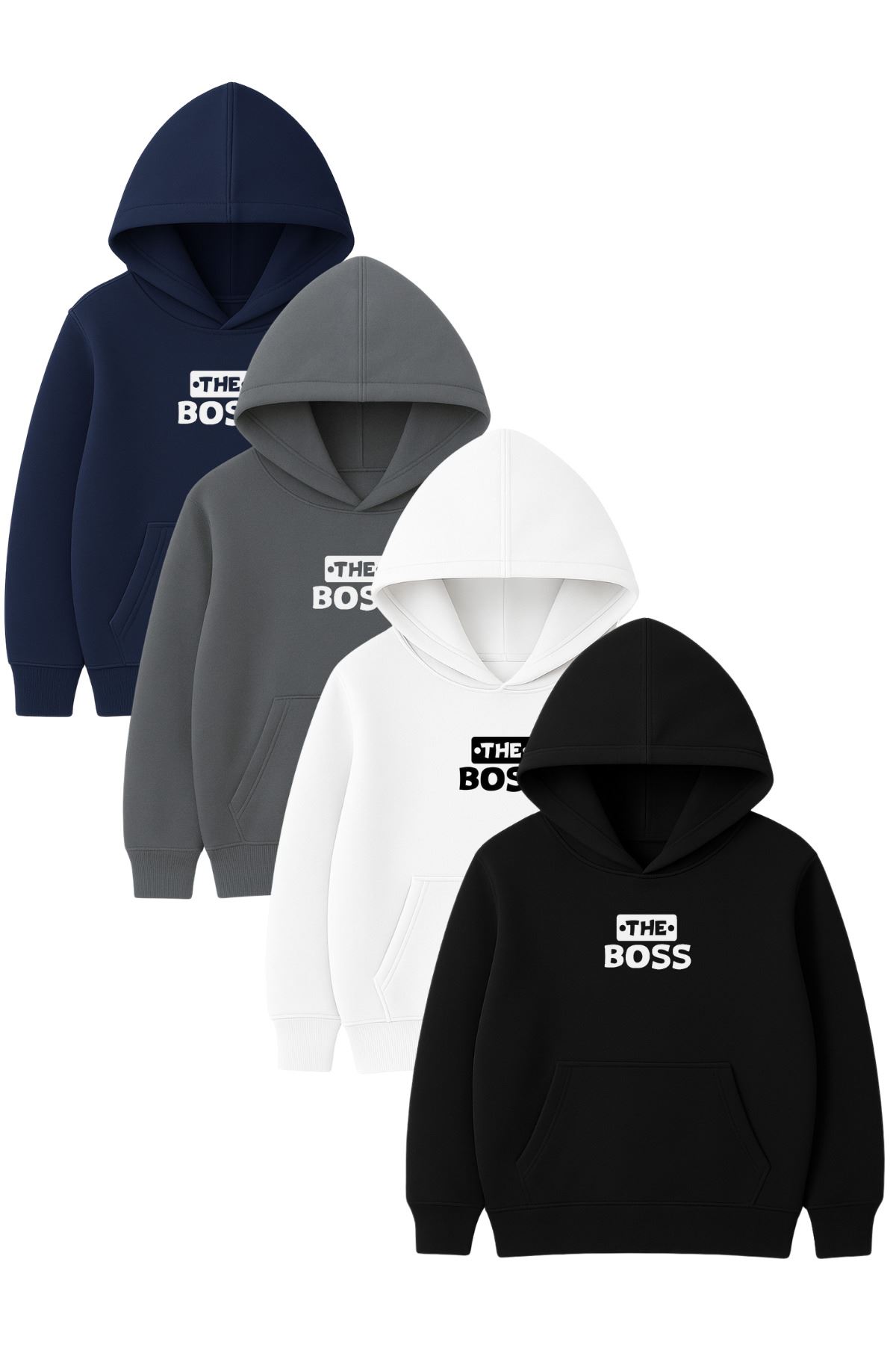 - Dijital baskı teknolojisi ile üretilen "THE BOS" baskısı, canlı ve uzun ömürlü renkler sunar.; - Kanguru cepli tasarımı ile pratik kullanım sağlar ve eşyalarınızı güvenle taşımanızı kolaylaştırır.; - Unisex tasarımı sayesinde hem kadınlar hem de erkekler için uygun bir stil sunar.; - Set içeriği, dört adet kapüşonlu hoodie ile kombin yapma esnekliği sağlar.; - Baskı/nakış tekniği olarak dijital baskı kullanılması, detayların net ve canlı görünmesini garanti eder.;