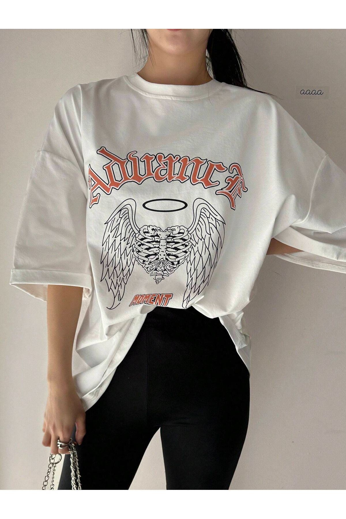 Advance Süprem T-shirt - Beyaz Baskılı Oversize Bisiklet Yaka Kısa Kol Tişört