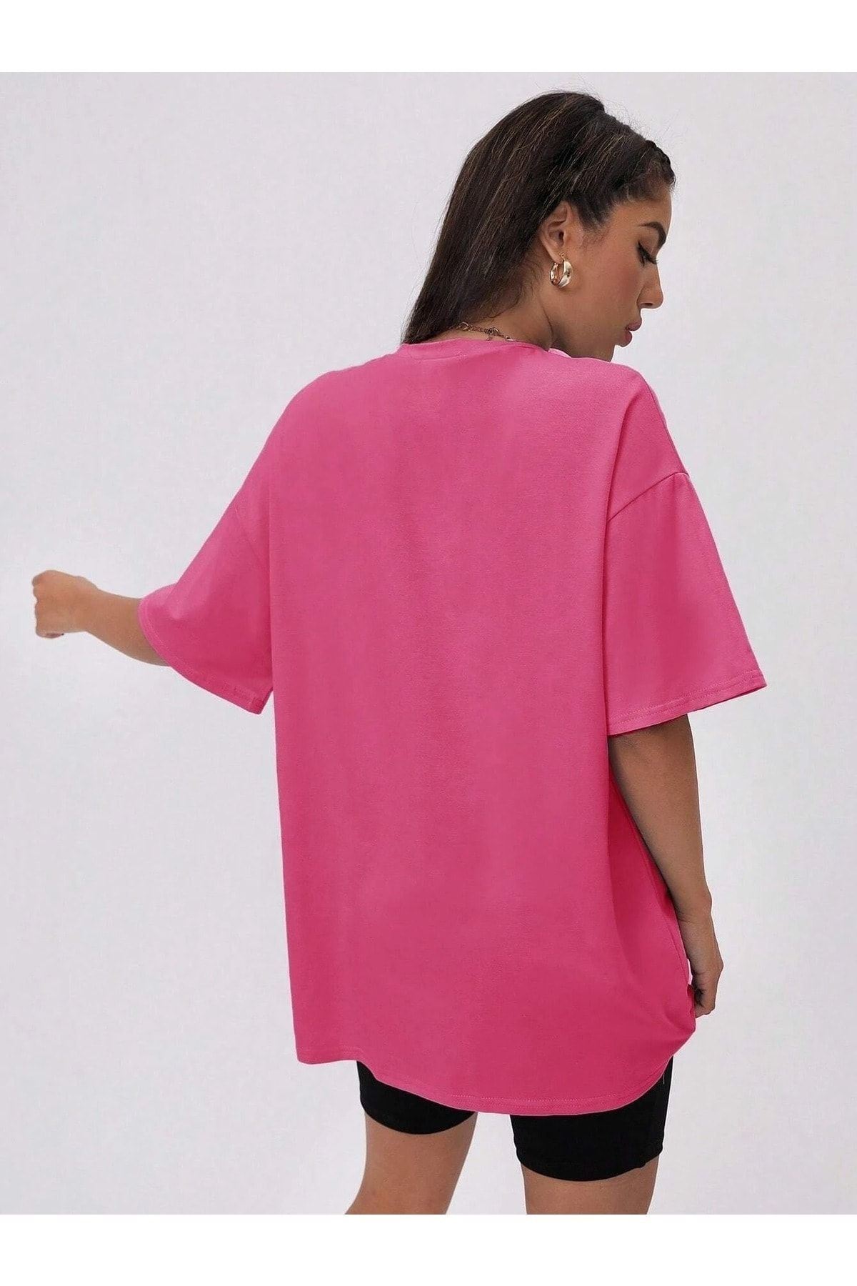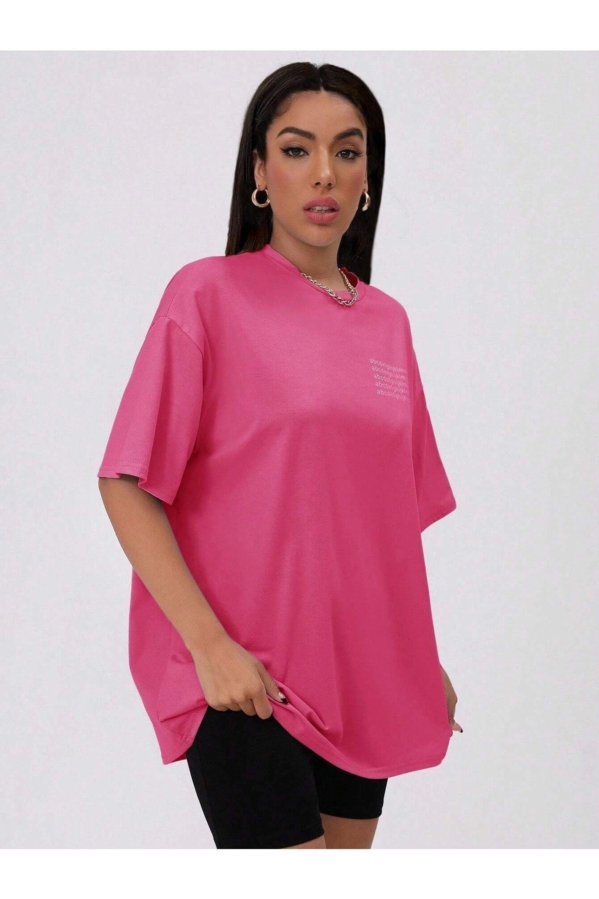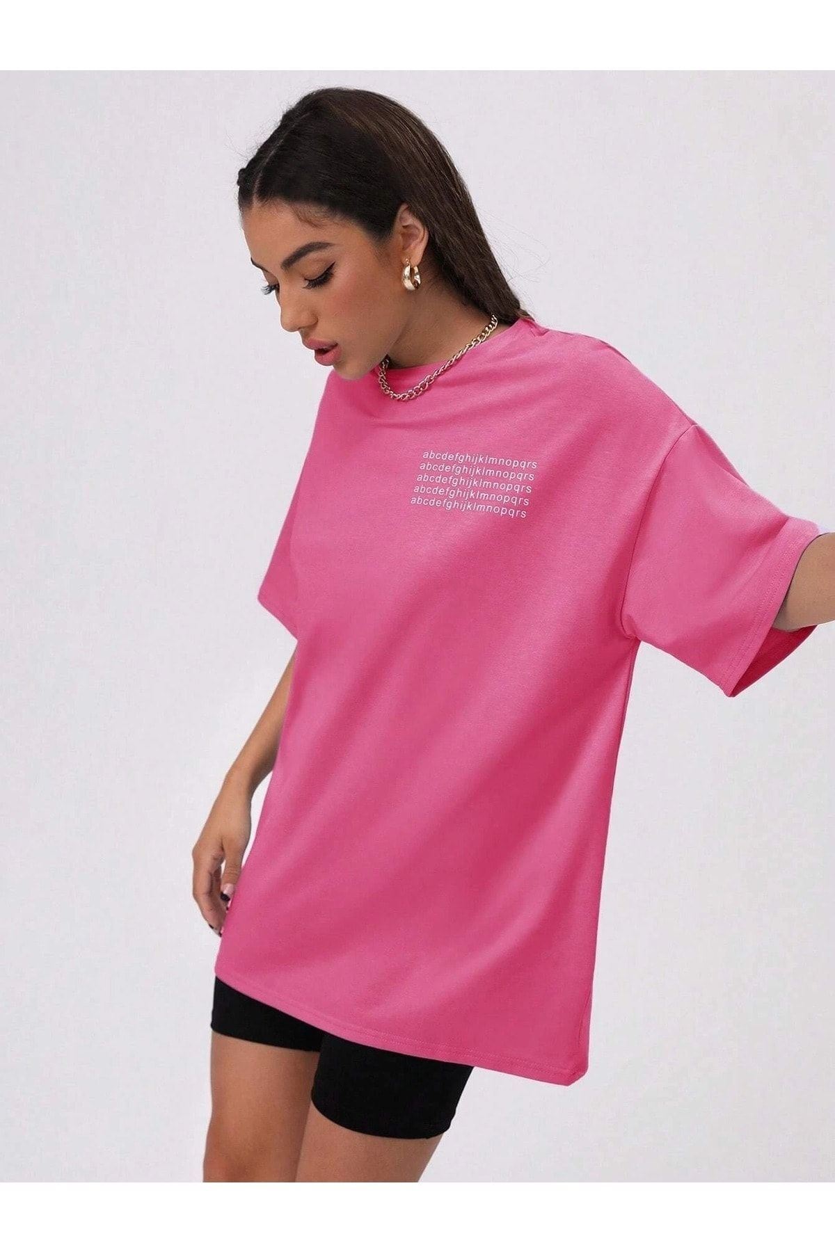Alfabe T-Shirt - Pembe Baskılı Oversize Bisiklet Yaka Kısa Kol