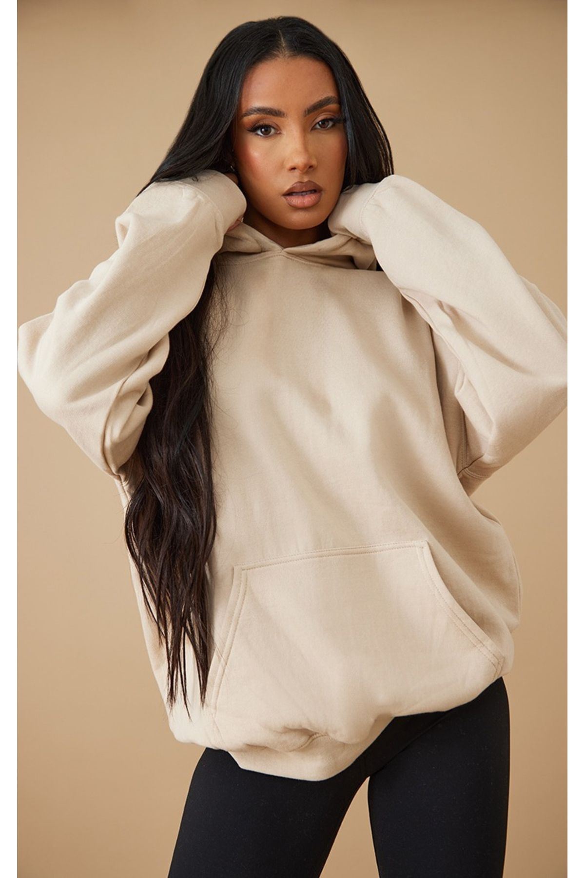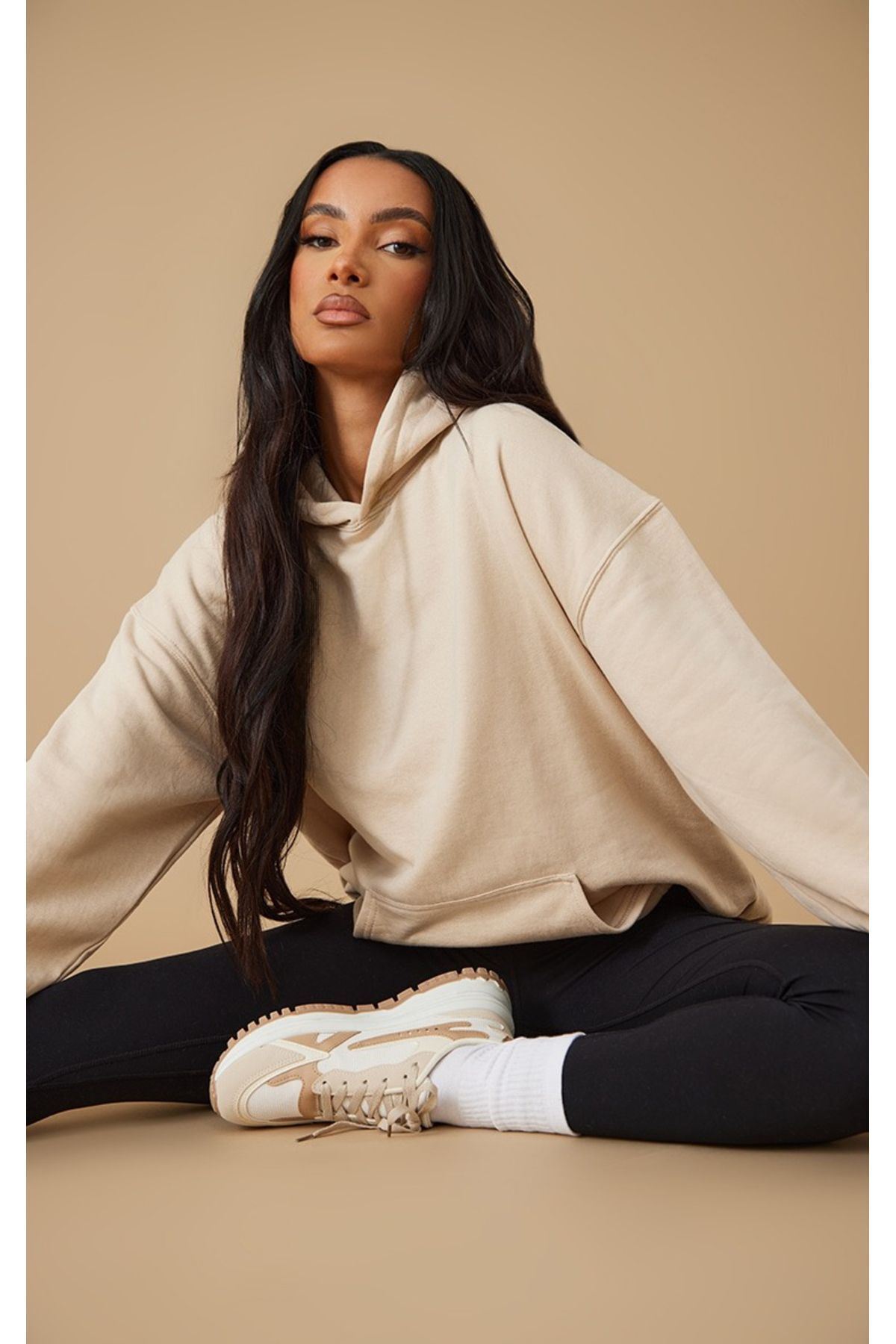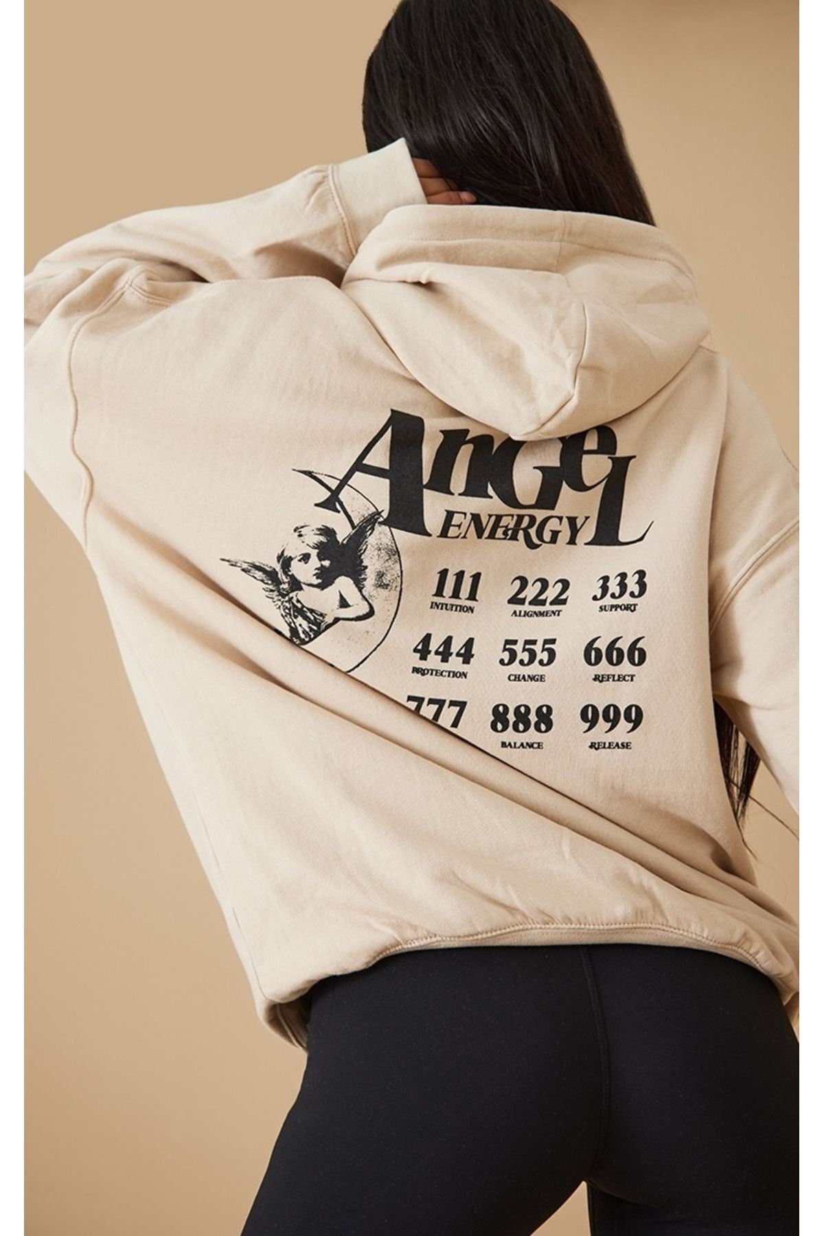 Angel Energy Sweatshirt - Bej Baskılı Oversize Kapüşonlu