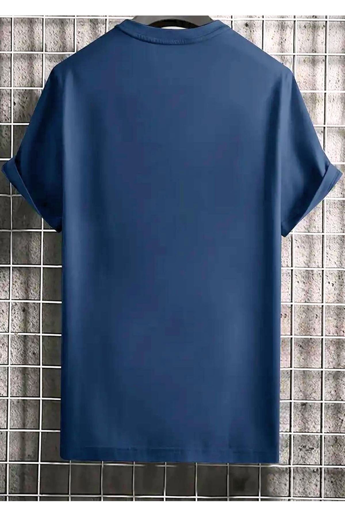Answer Me Süprem T-shirt - Lacivert Baskılı Oversize Bisiklet Yaka Kısa Kol Tişört