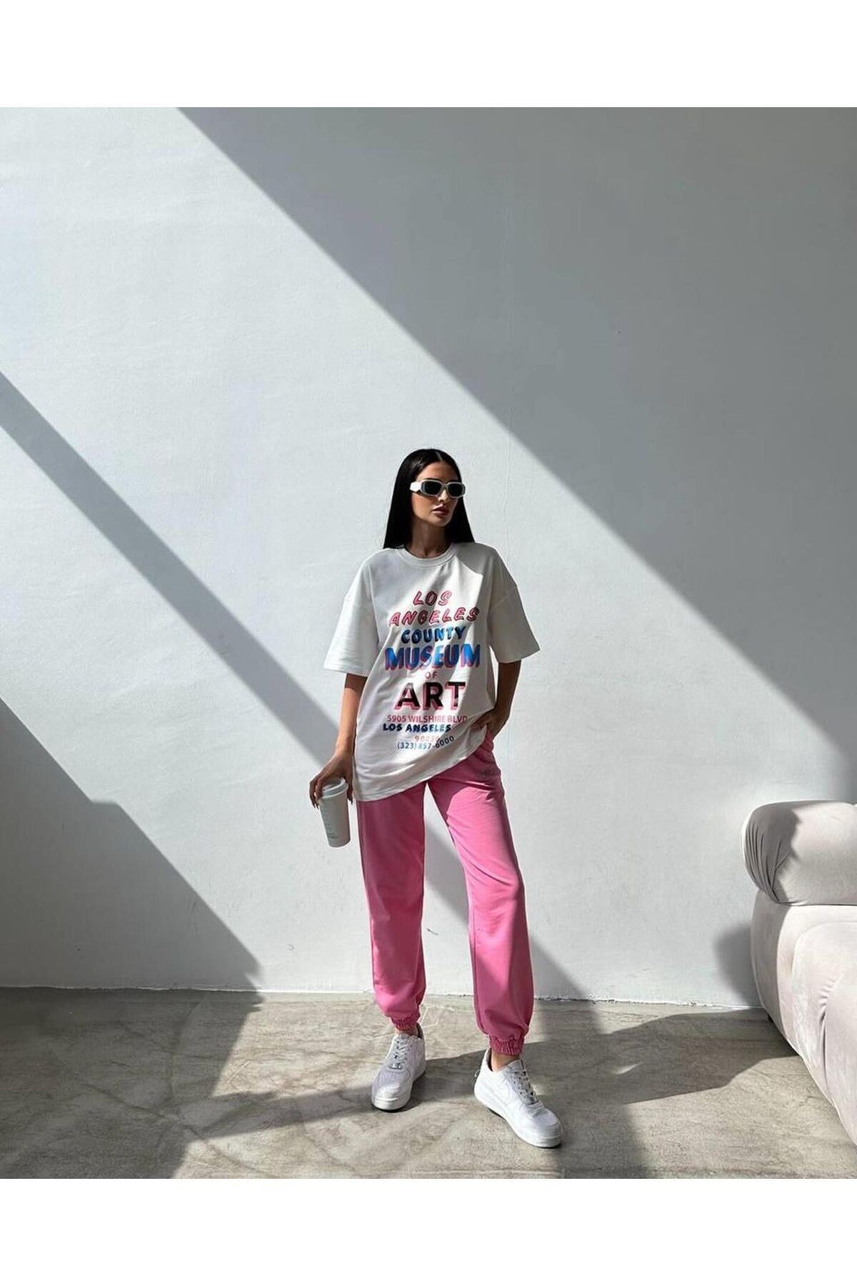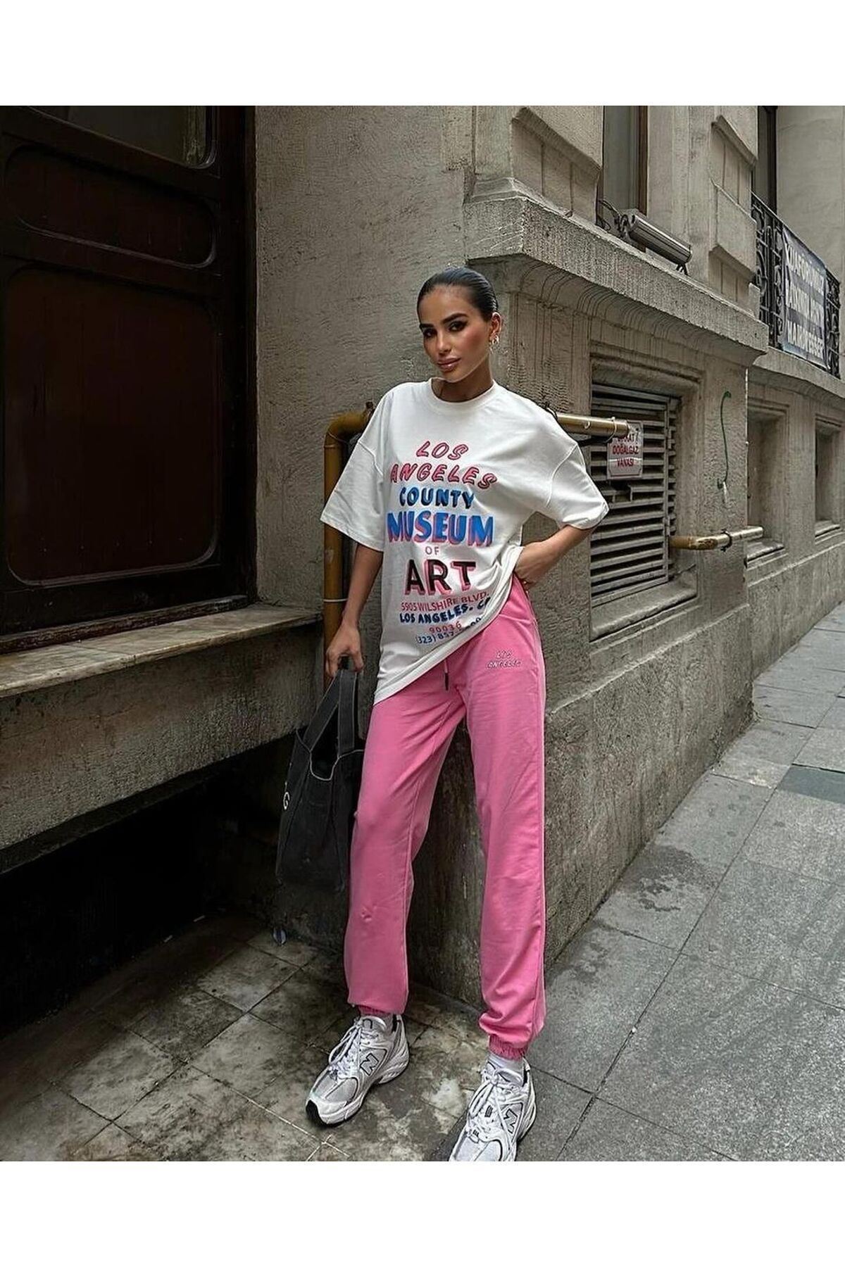 ART Baskılı T-shirt Eşofman Altı Jogger-Baskılı Alt Üst Eşofman Takım Oversize Bisiklet Yaka