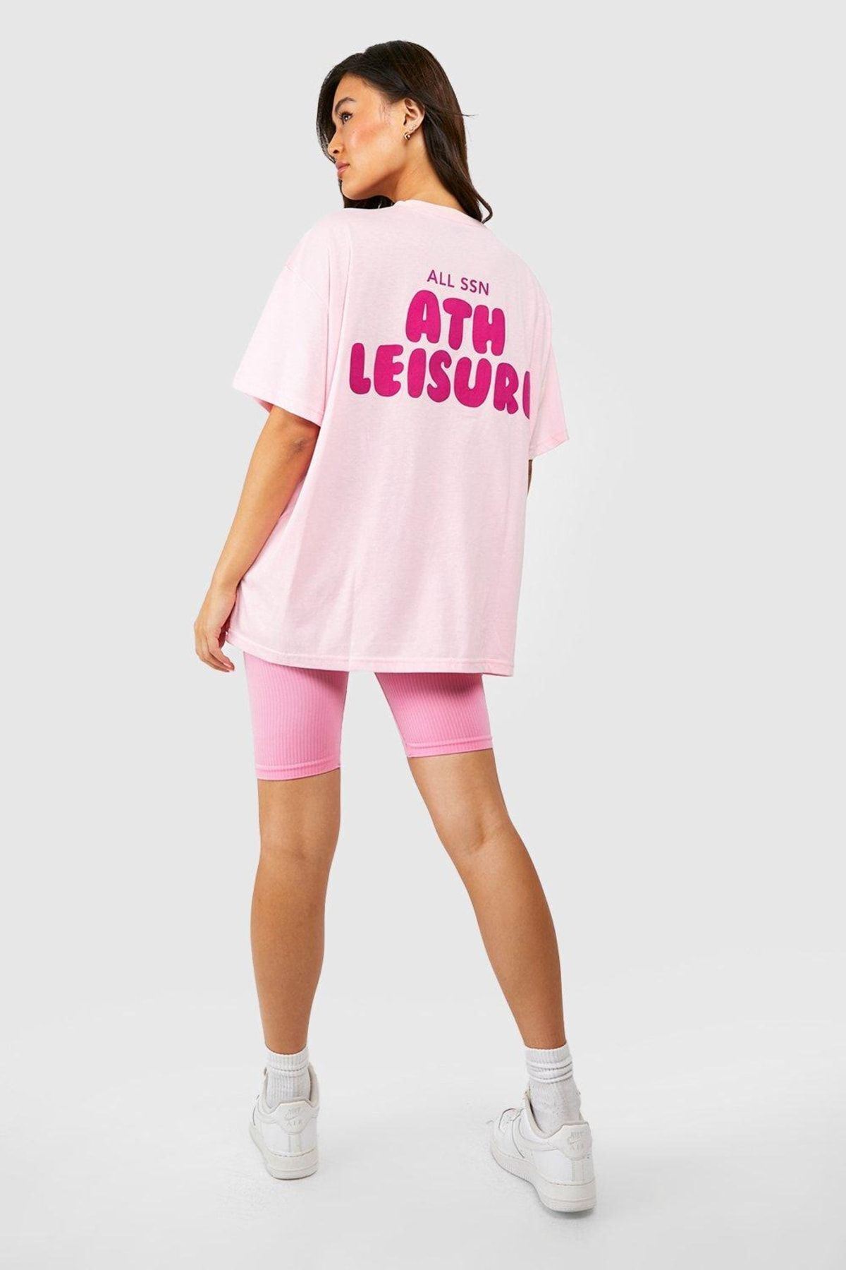 Ath Leisure T-shirt - Pembe Baskılı Oversize Bisiklet Yaka Kısa Kol Tişört