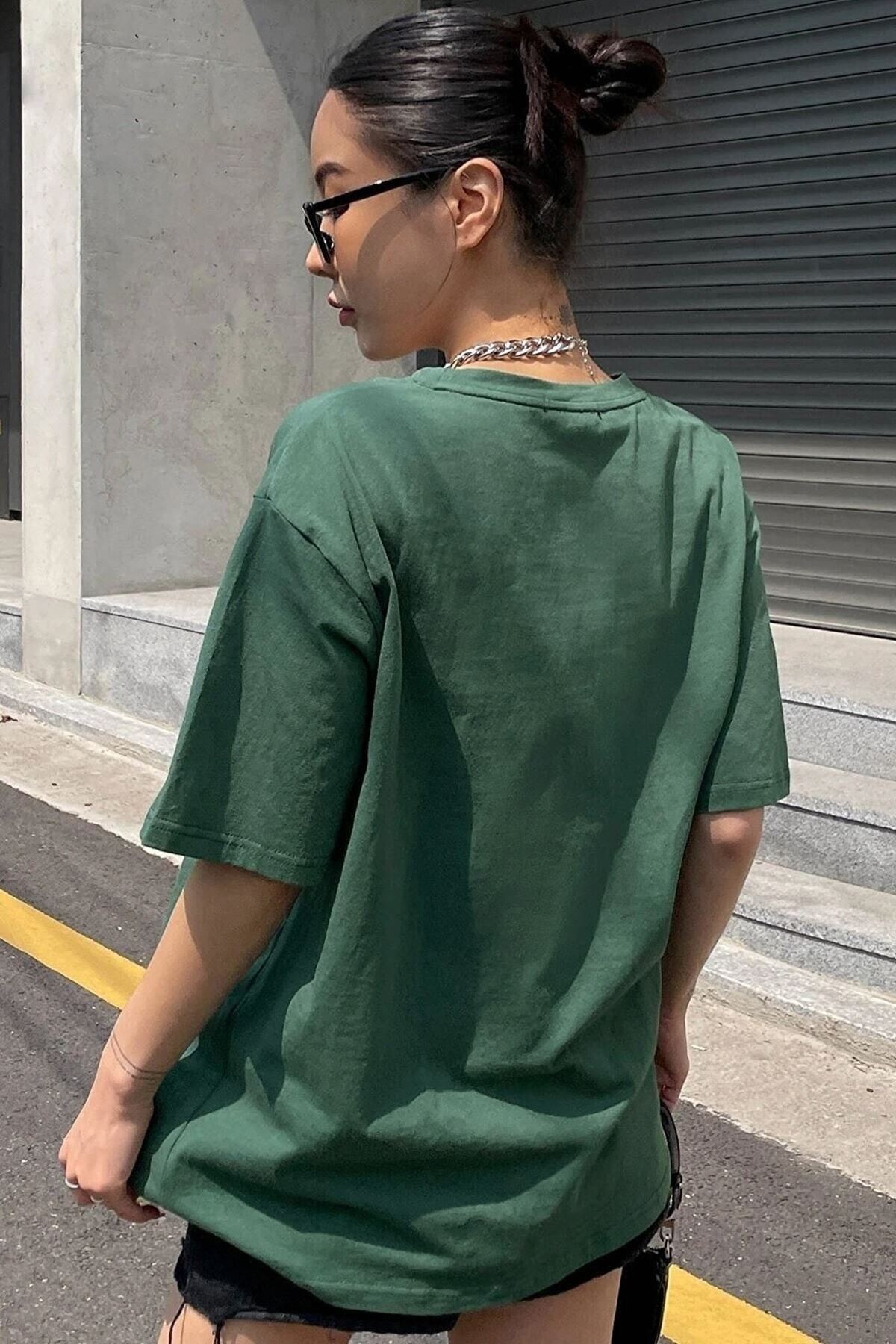 Balance Yazılı T-shirt - Yeşil Baskılı Oversize Bisiklet Yaka Kısa Kol Tişört