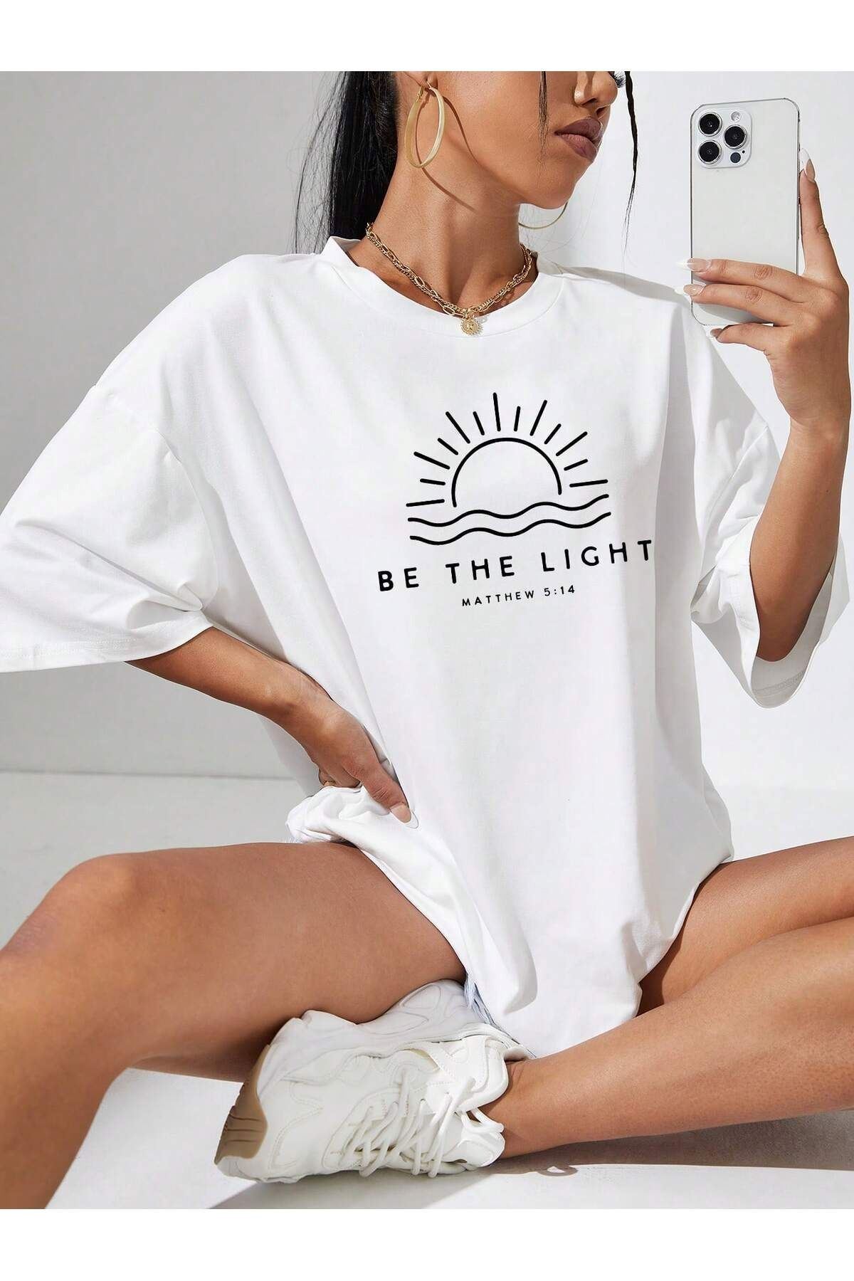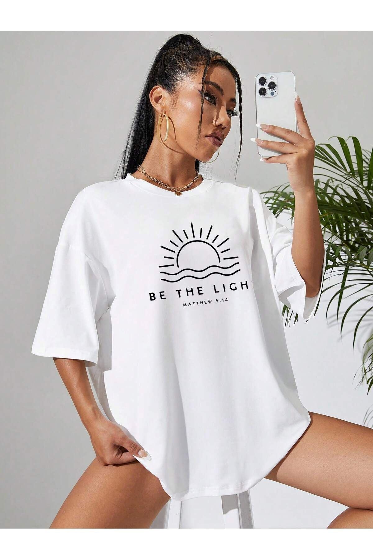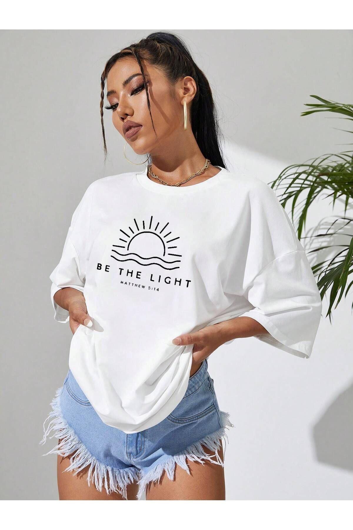 BE THE LIGHT Kadın Renkli Özel Baskılı Oversize Süprem Bisiklet Yaka T-Shirt