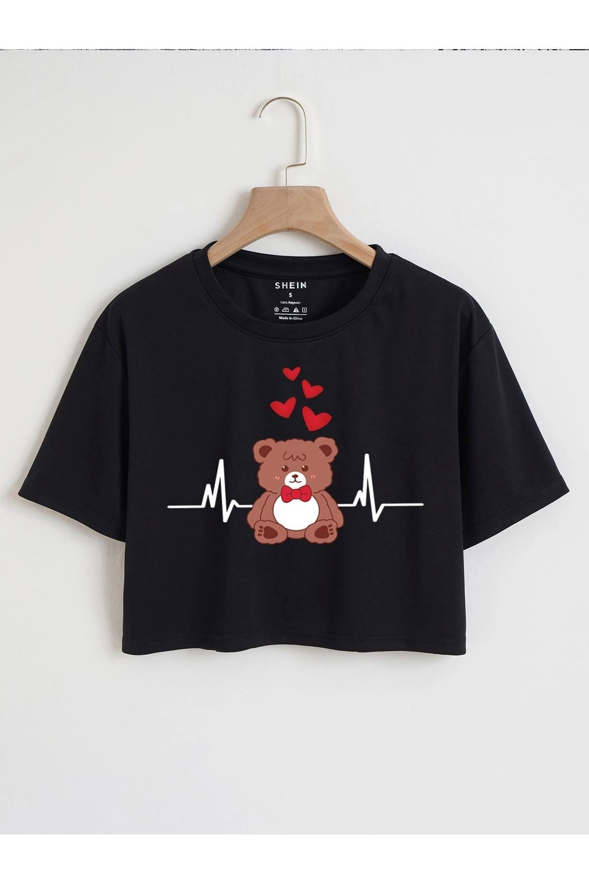 - Minimal kalp baskısı ile şıklığı ve rahatlığı bir arada sunan kadın crop t-shirt.