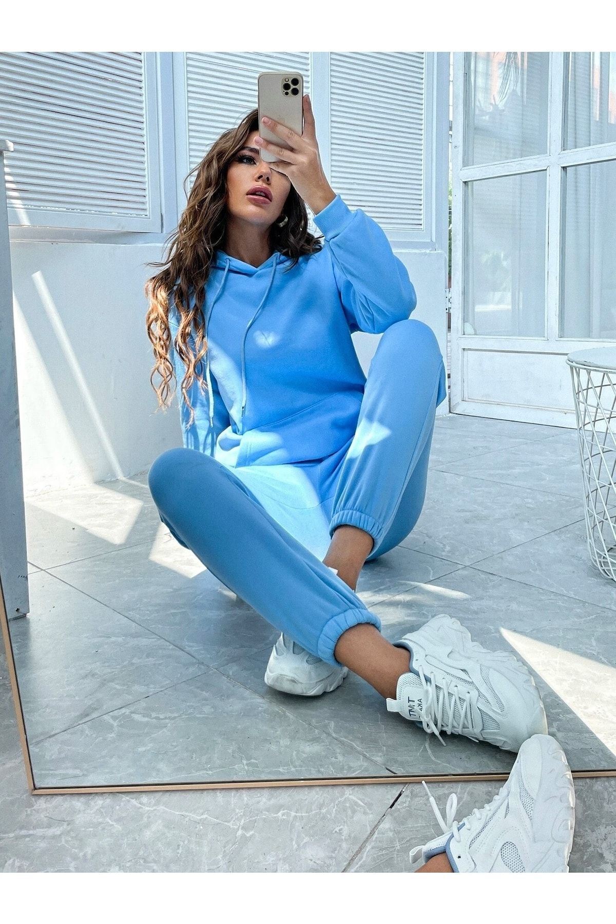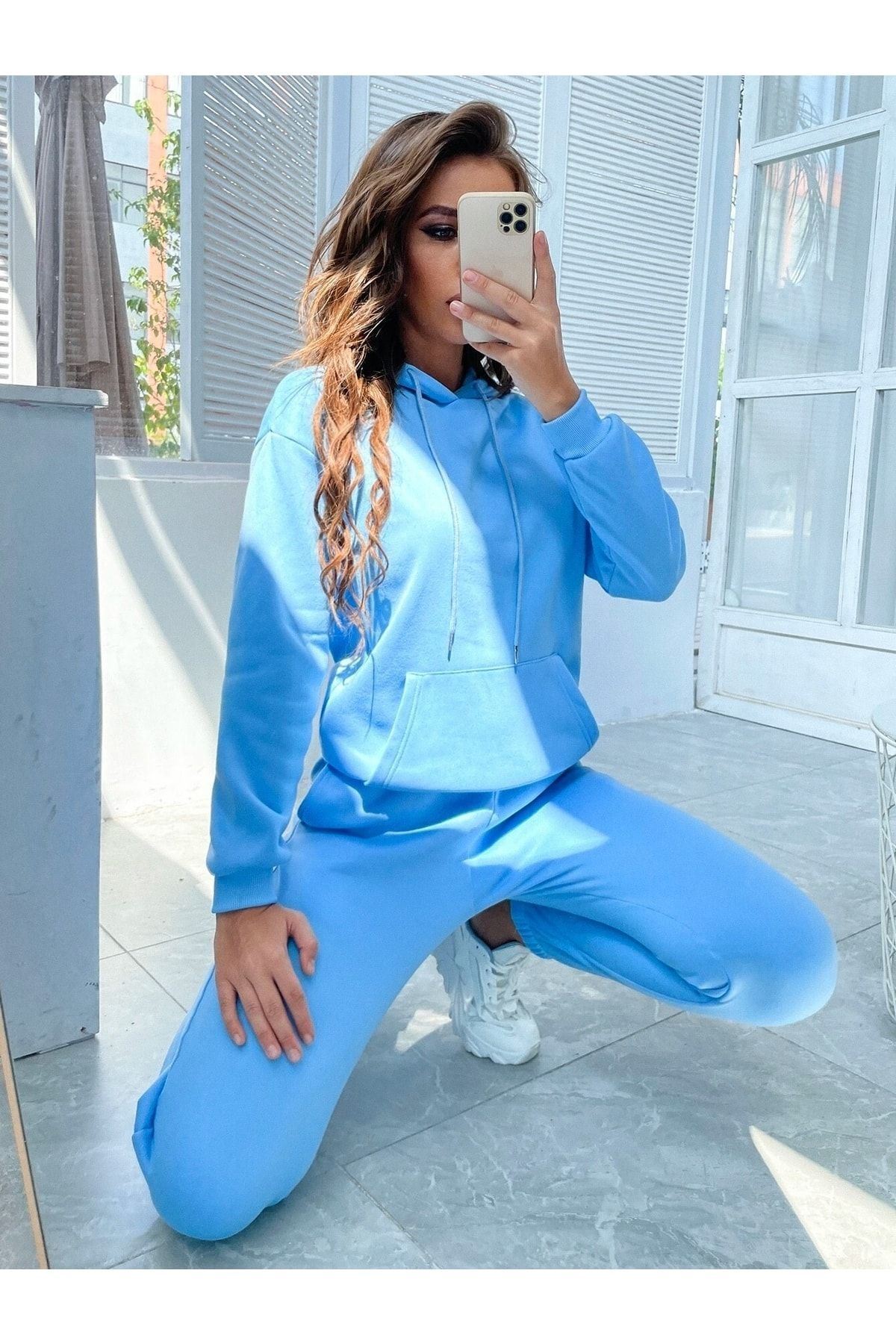 " Trendy, oversize: sıcak tutan kumaşıyla rahat edin!" ; Trend, baskılı ve oversize özelliklerini bir arada sunan bebe mavisi eşofman takımı, kalın ve sıcak tutan bir kumaşa sahiptir. Bu sayede, günlük yaşamda rahatlıkla kullanabileceğiniz gibi, soğuk havalarda da bedeninizi sıcak tutarak rahat edersiniz. ; 3 İPLİK ŞARDONLU ; OVERSİZE ; 30 DERECE DE TERSTEN YIKAMA YAPINIZ. ;