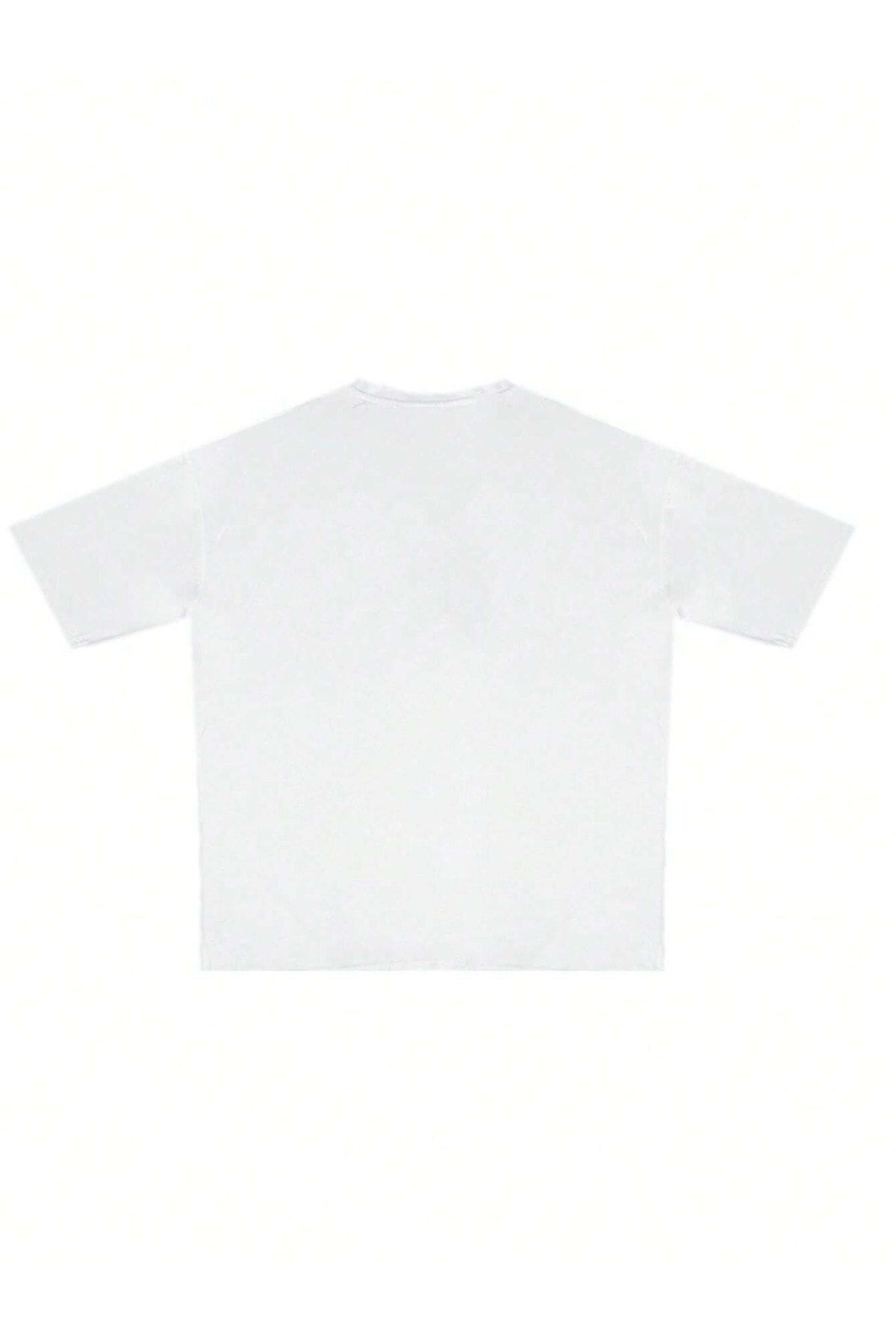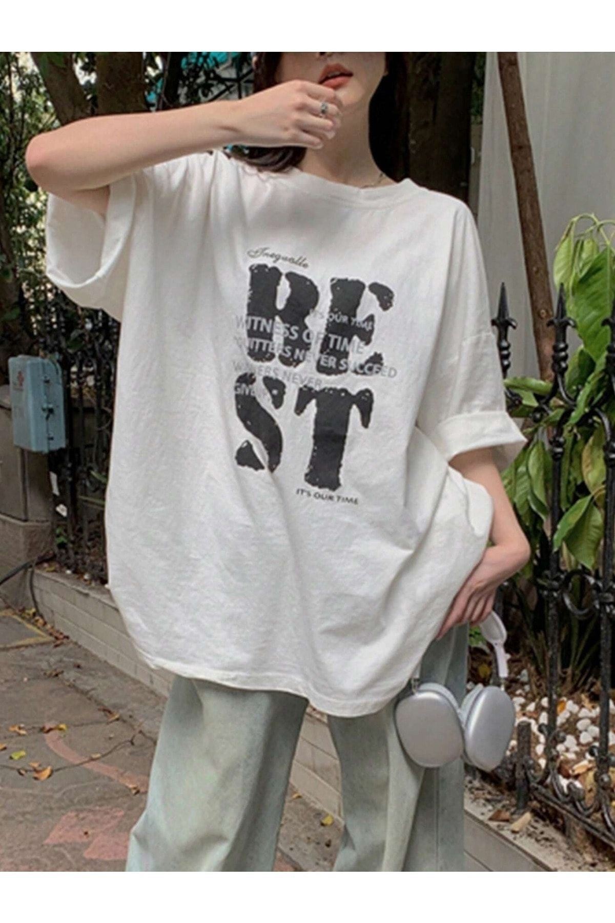 Best T-Shirt - Beyaz Baskılı Oversize Bisiklet Yaka Kısa Kol