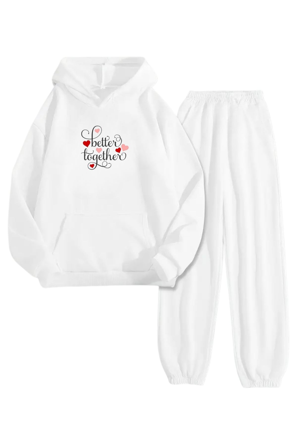 Beyaz Eşofman Takımı – Better Together Baskılı, Kapüşonlu Sweatshirt ve Jogger Pantolon
