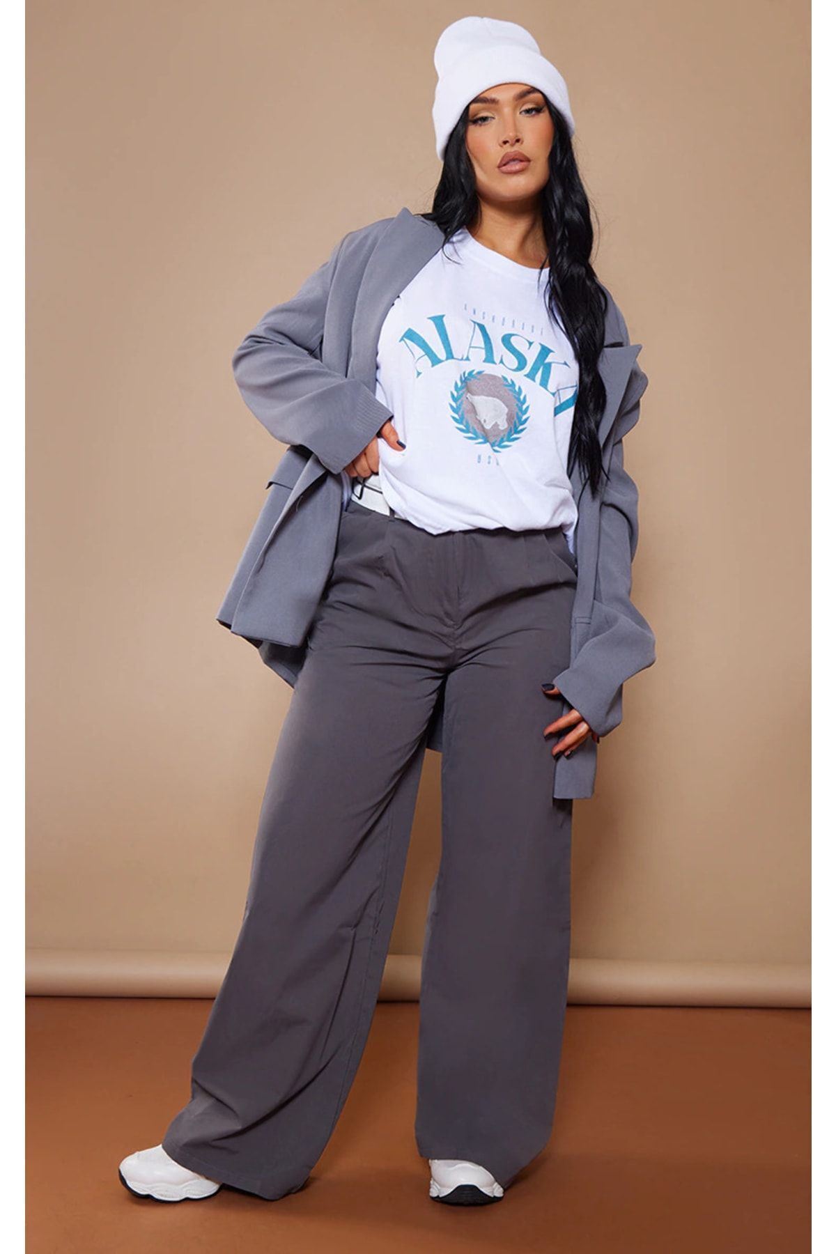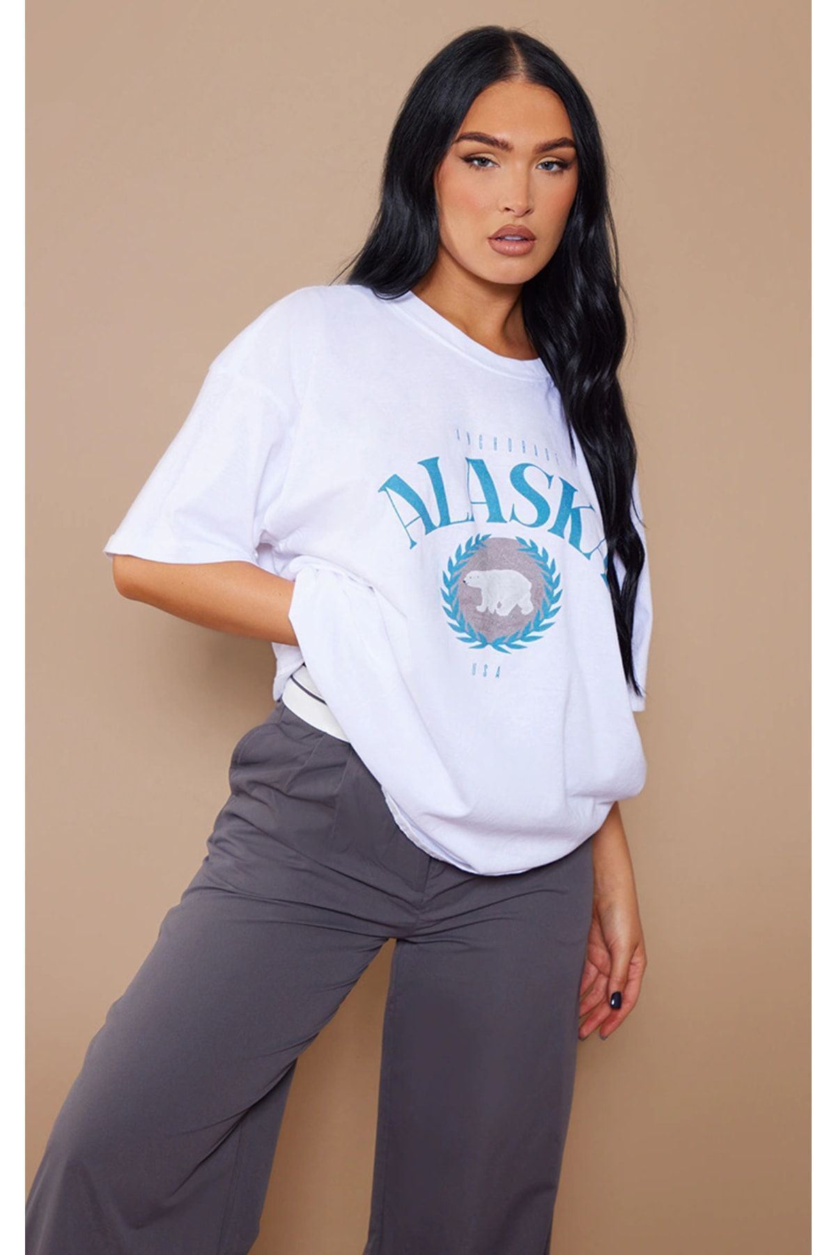 Beyaz Oversize Alaska T-shirt - Oversize Baskılı