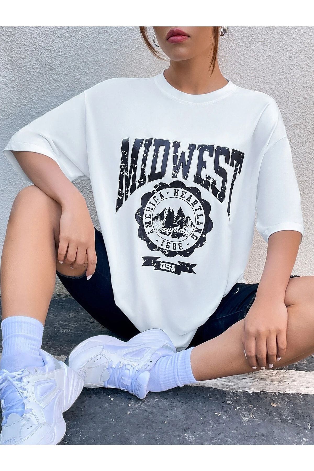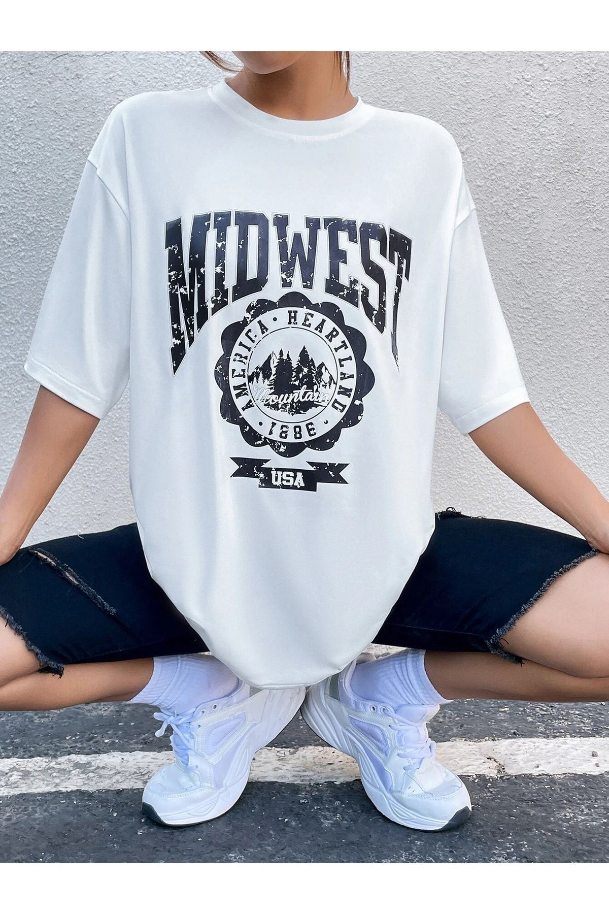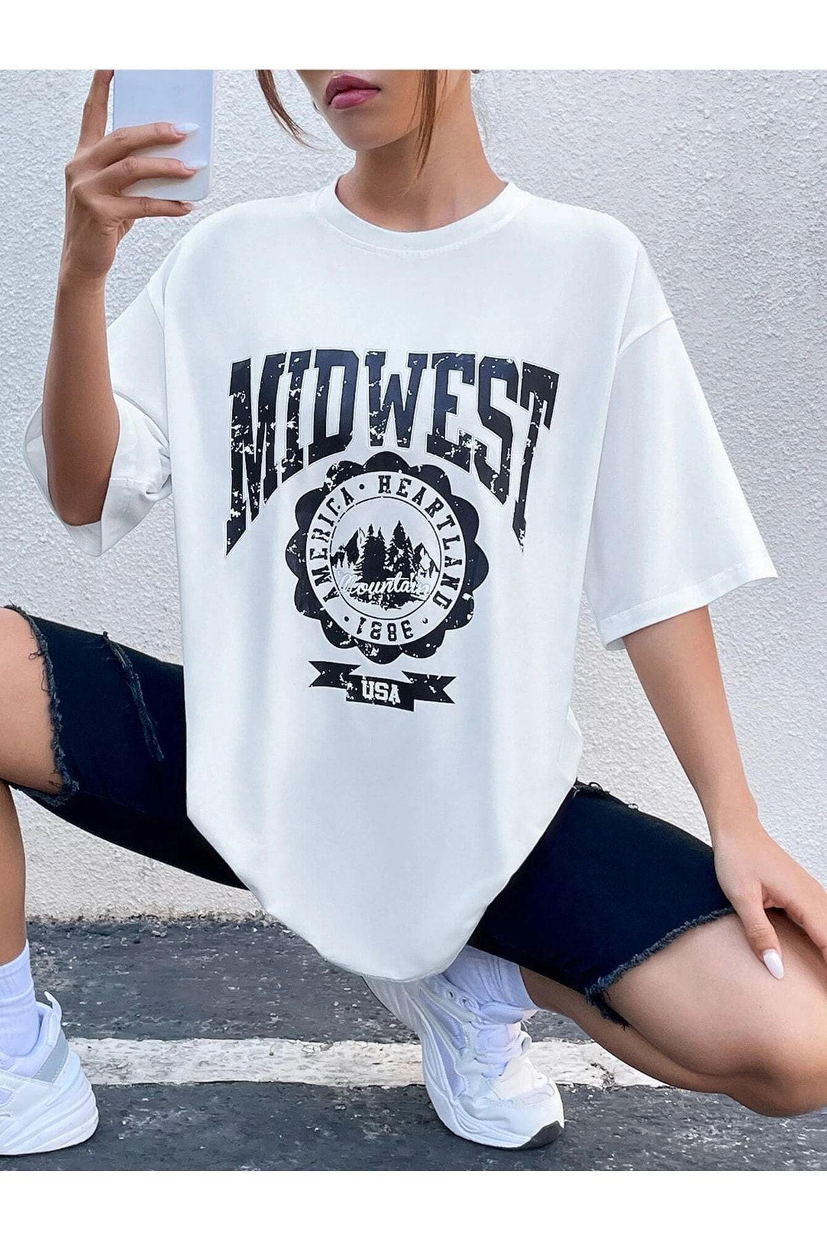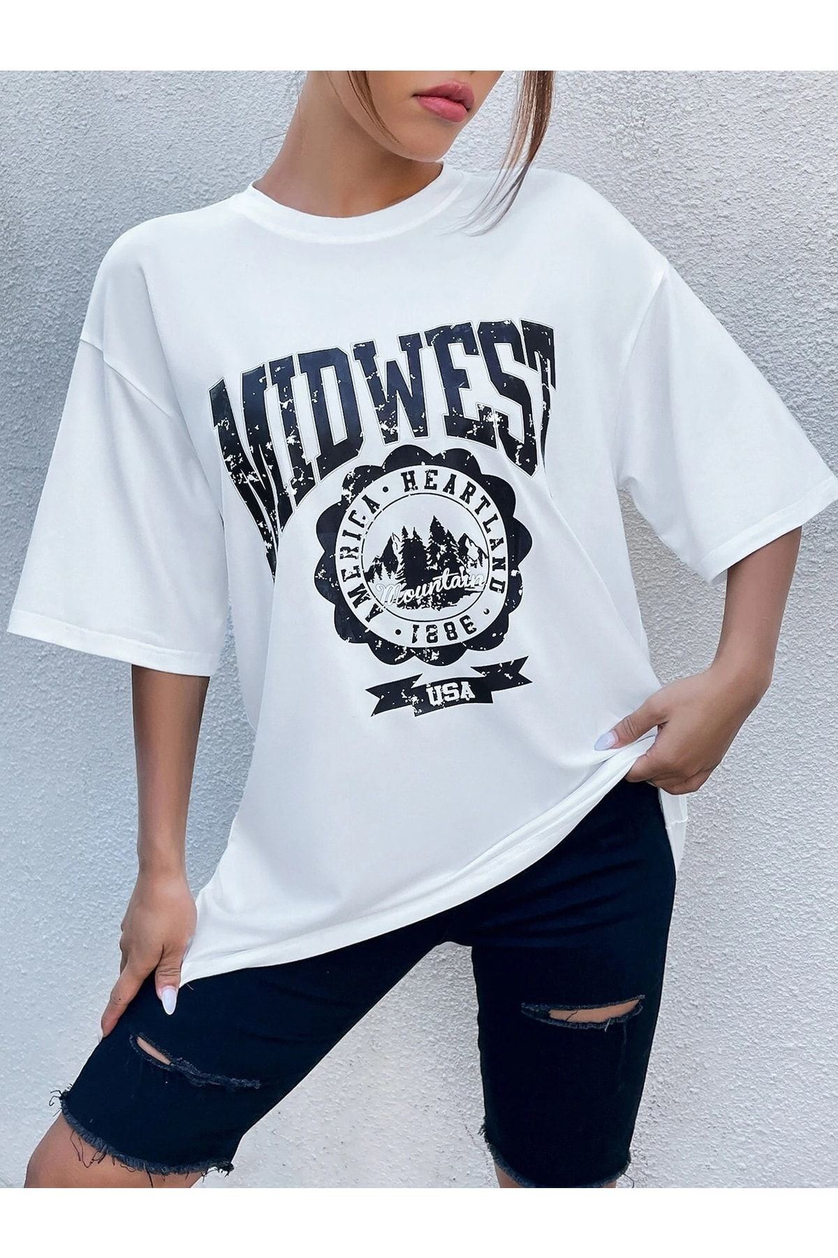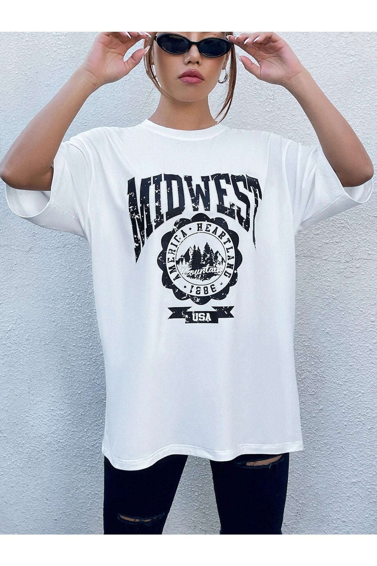 Beyaz Oversize Midwest Series 6 T-shirt - Oversize Baskılı