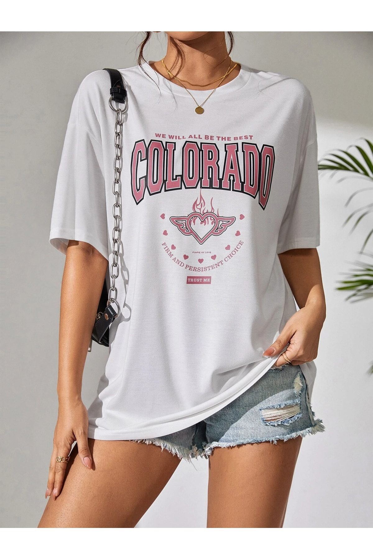 Beyaz Oversize Pembe Colorado Baskılı T-shirt - Oversize Baskılı