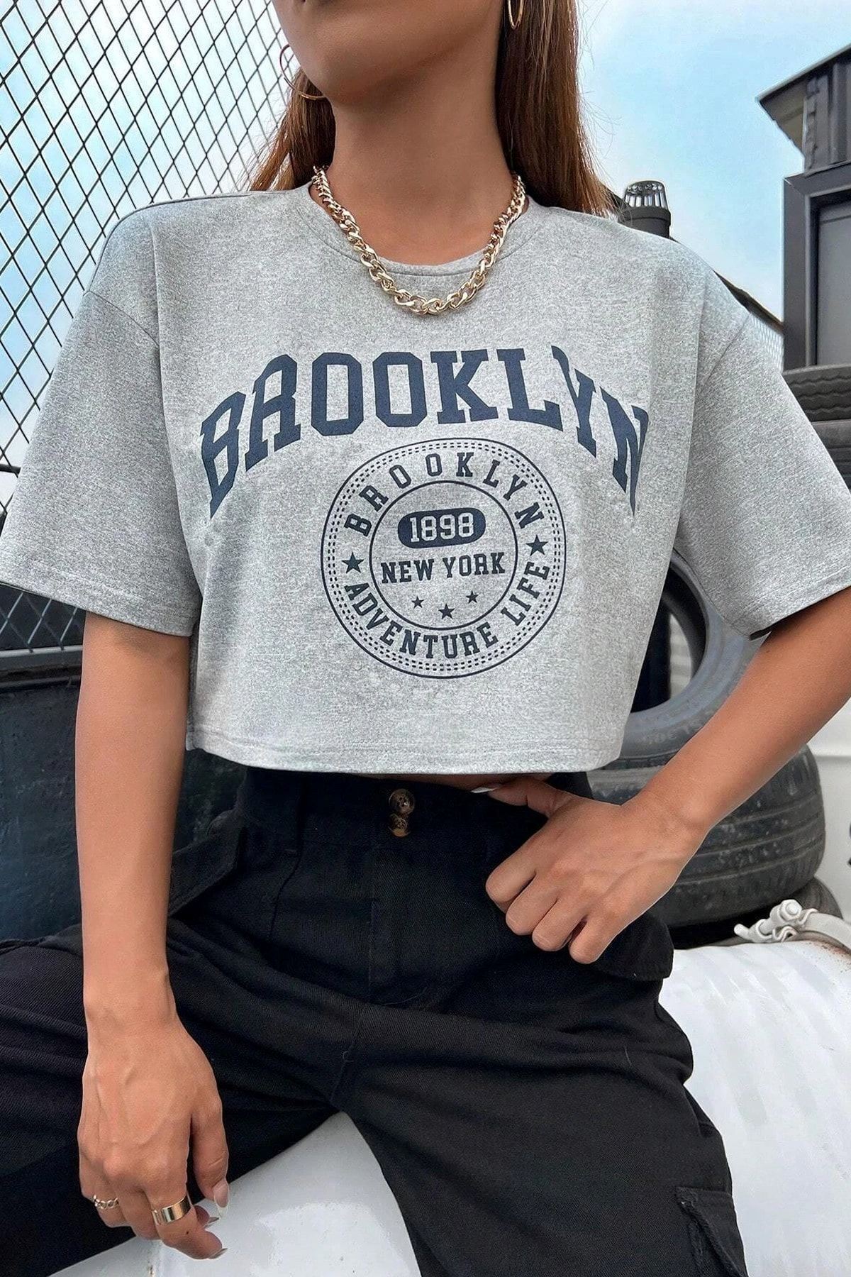Brooklyn 1898 Adventure Baskılı Kadın Crop Grimelanj T-shirt