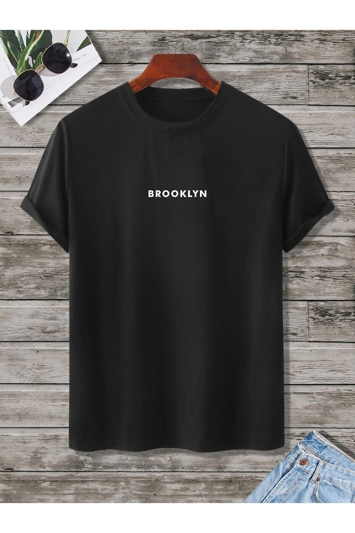 Brooklyn Minimal T-shirt - Siyah Baskılı Oversize Bisiklet Yaka Kısa Kol Tişört