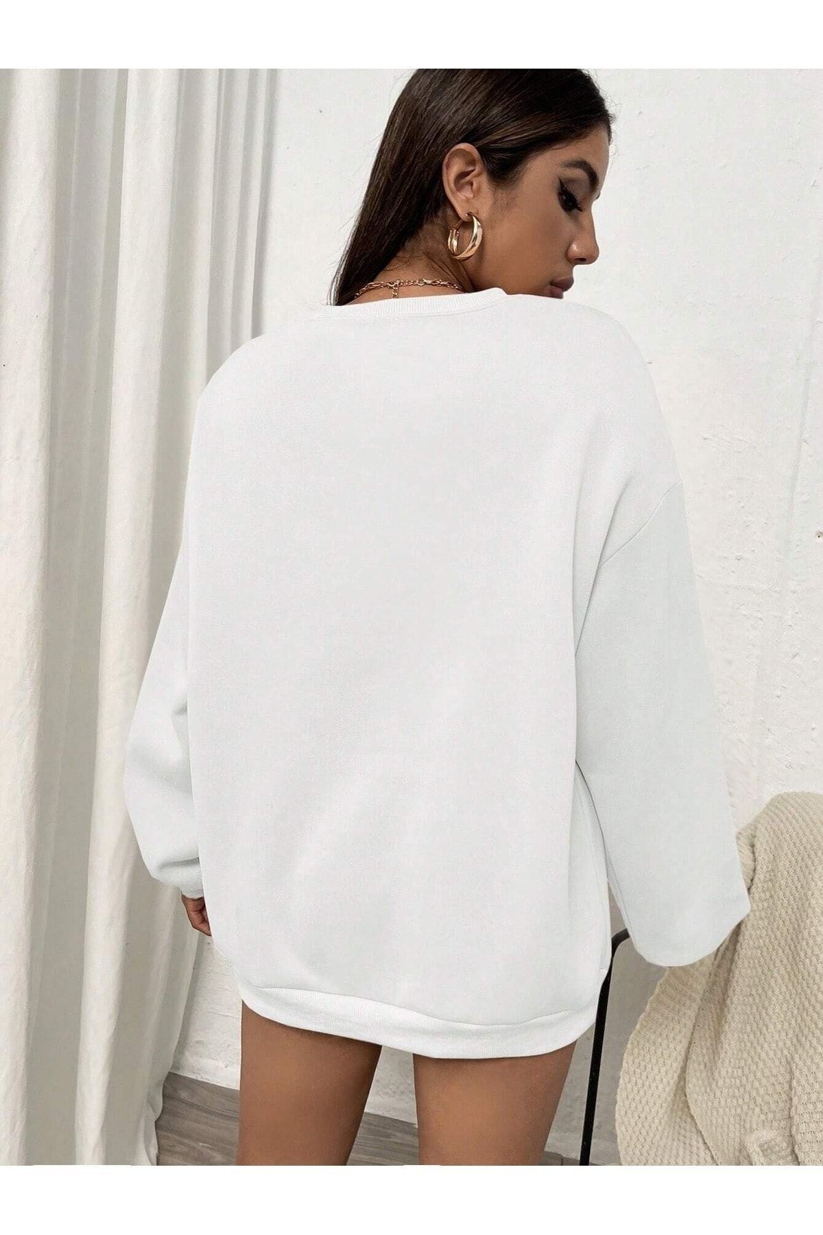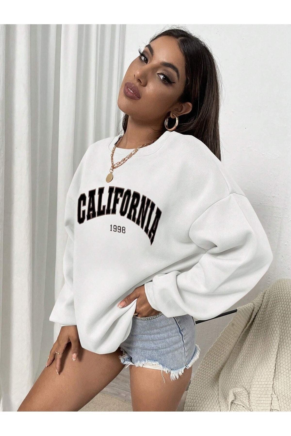 California 1998 Sweatshirt - Beyaz Baskılı Oversize Bisiklet Yaka