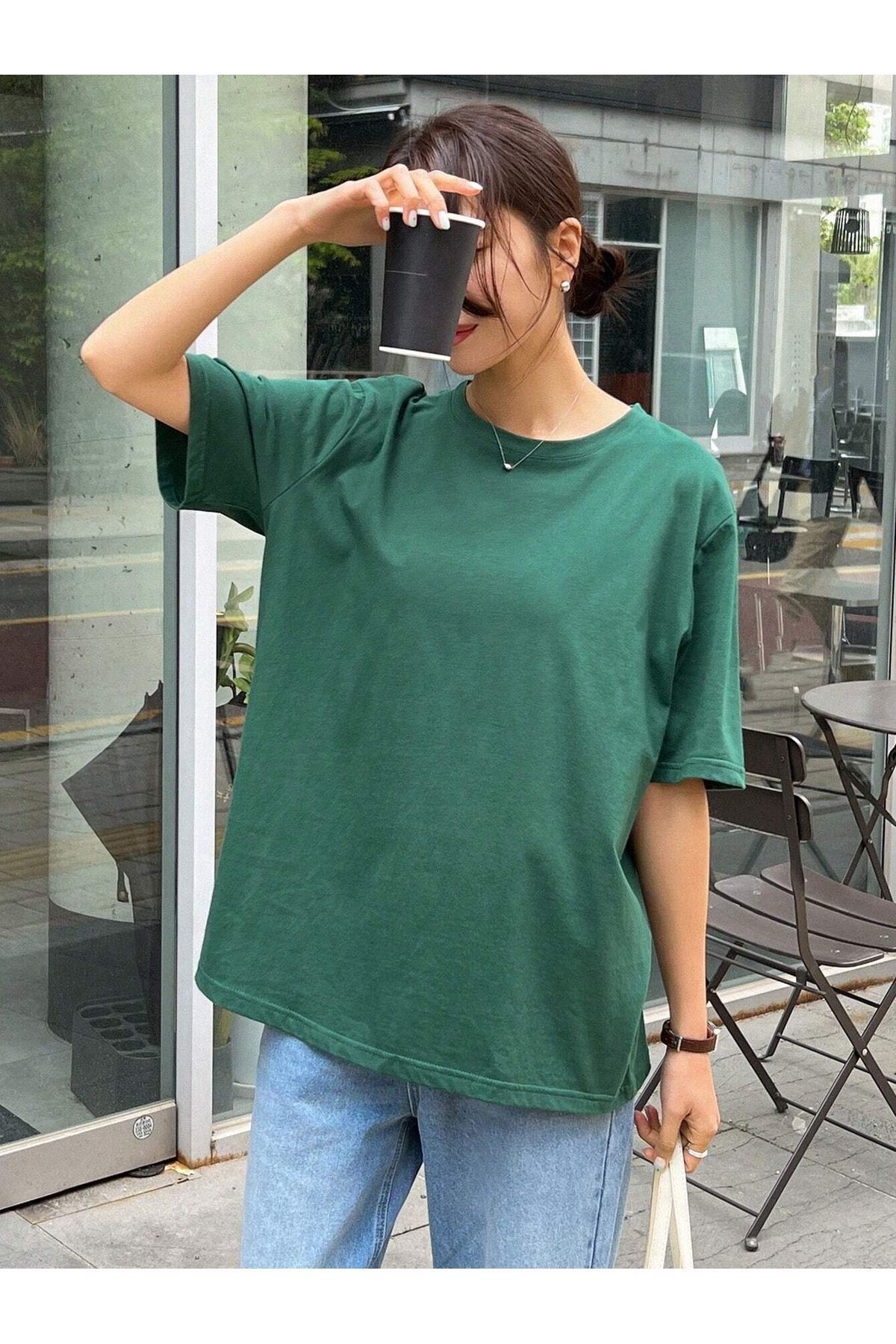 California Aurora Süprem T-Shirt - Nefti Yeşil Baskılı Oversize Bisiklet Yaka Kısa Kol Tişört