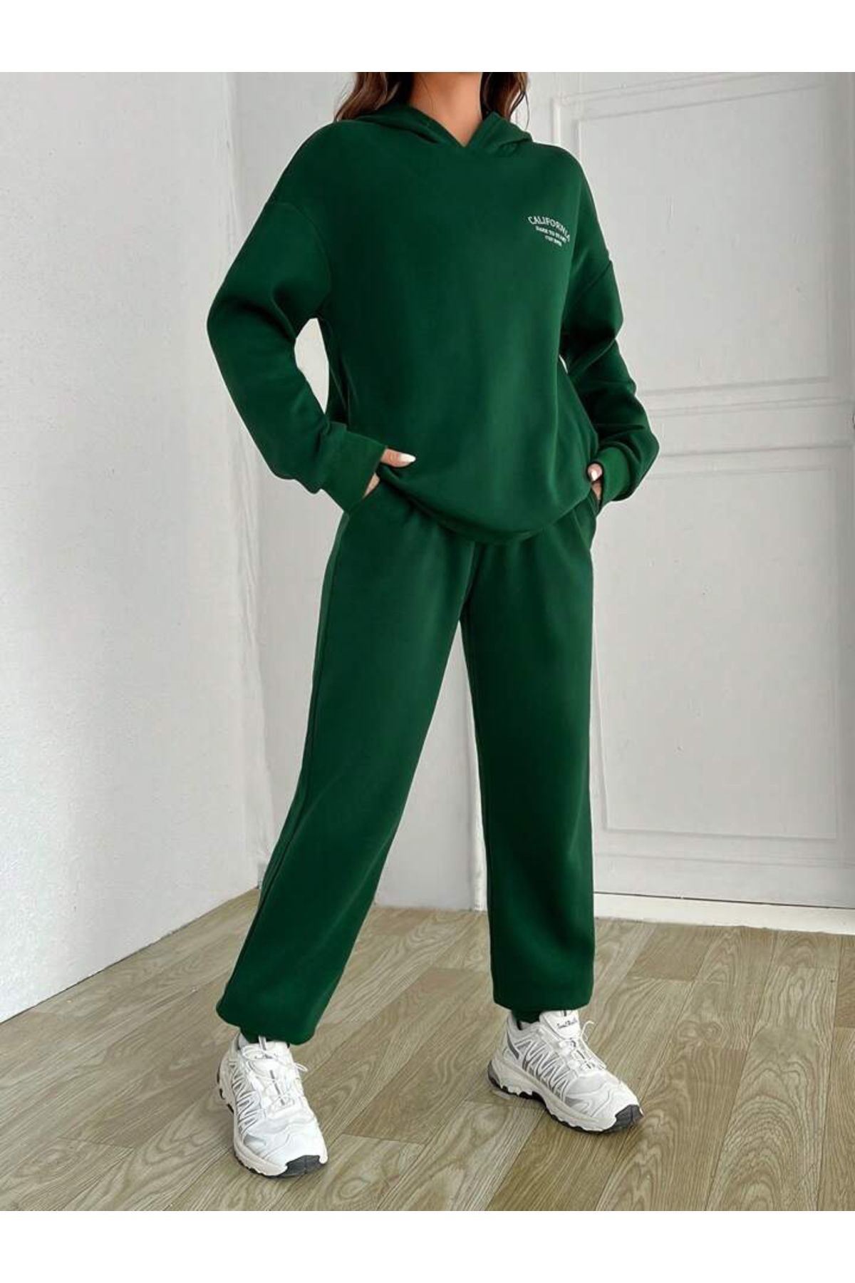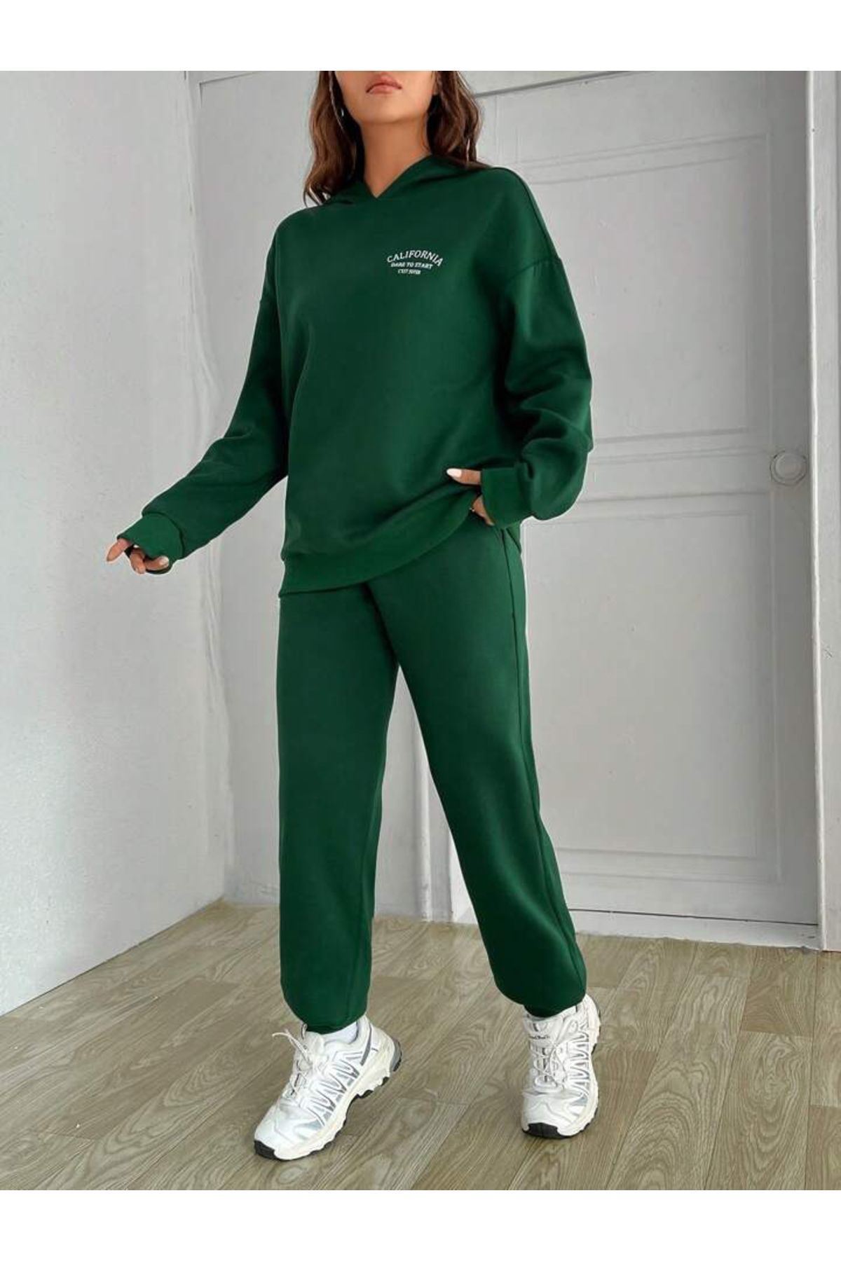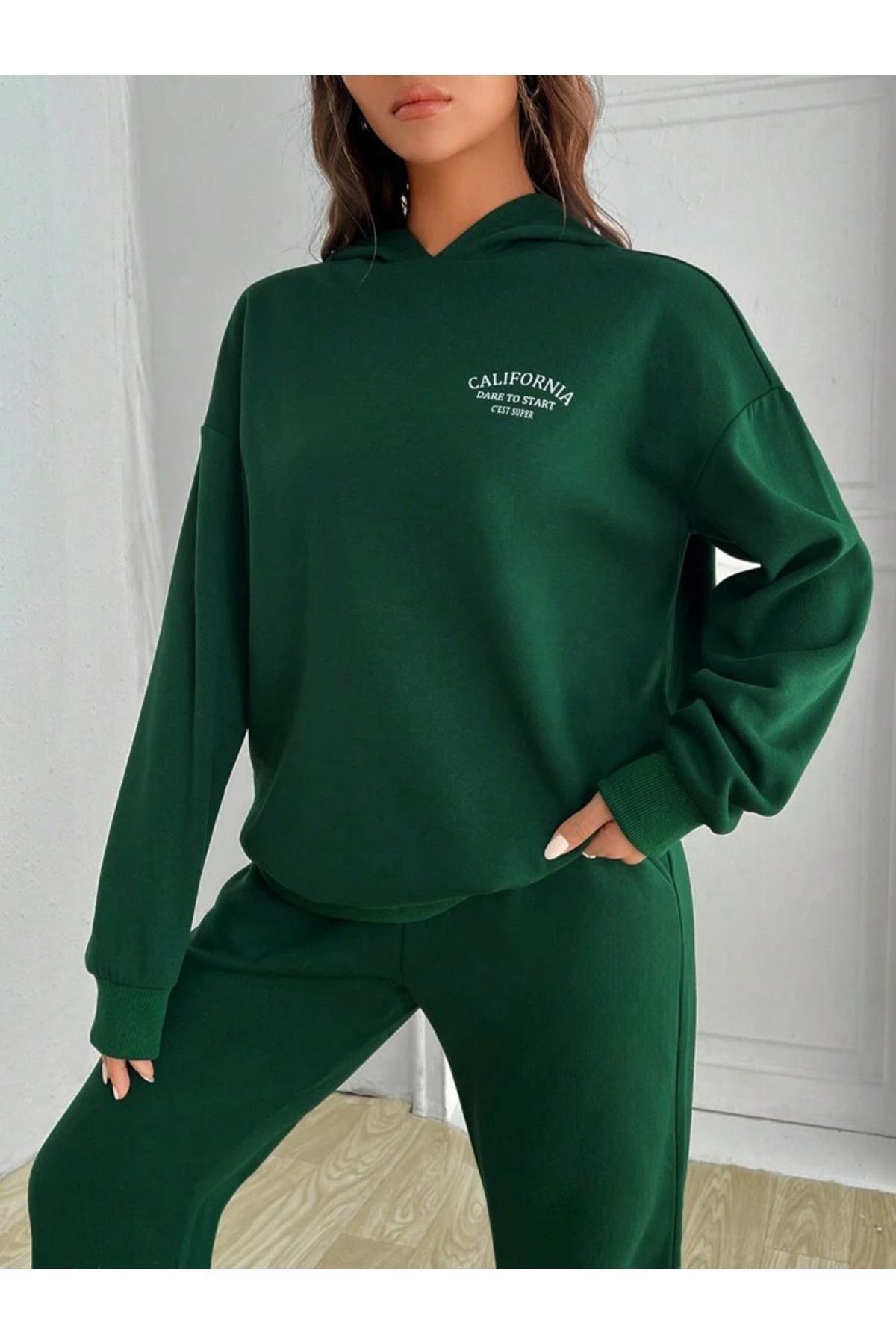 California Dream Eşofman Takımı Sweatshirt Jogger - Yeşil Baskılı Oversize Şardonlu Kapüşonlu