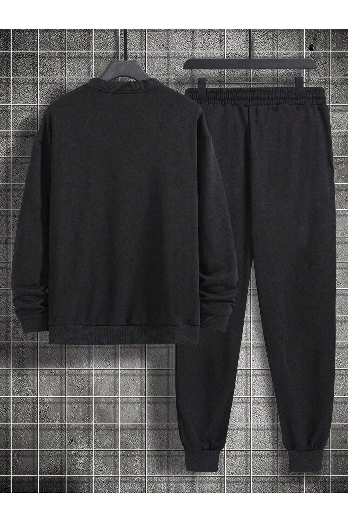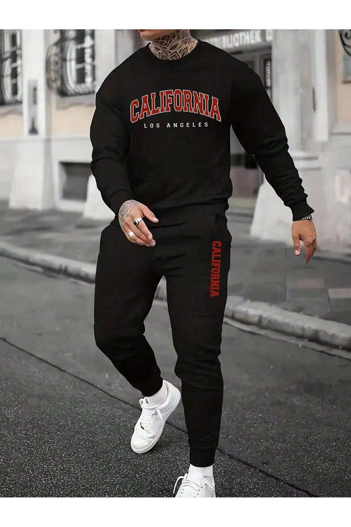 California Los Eşofman Takımı Sweatshirt Jogger - Siyah Baskılı Oversize Şardonlu Bisiklet Yaka