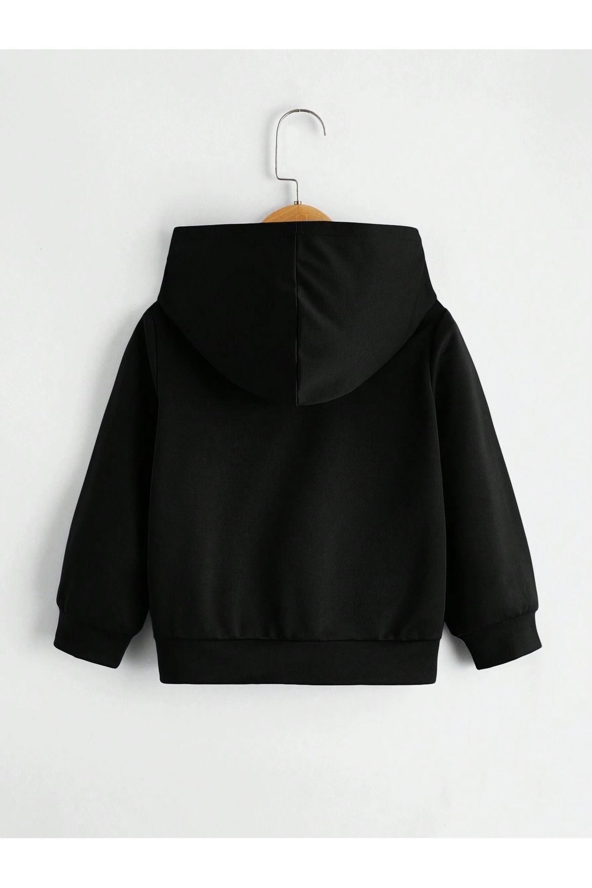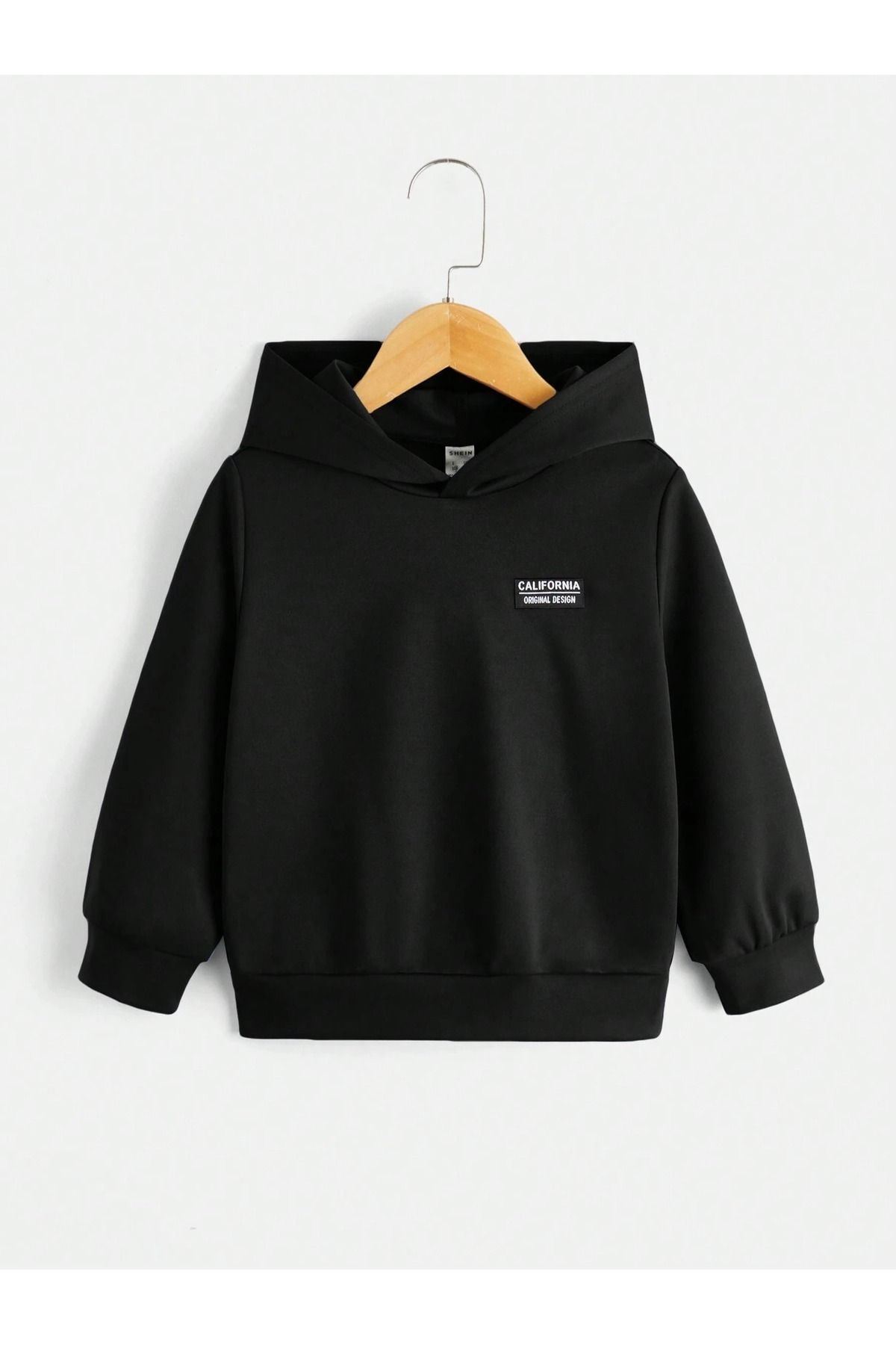 California Pamuklu Çocuk Sweatshirt - Siyah Baskılı Kız Erkek Çocuk Kışlık Cepli Kapüşonlu