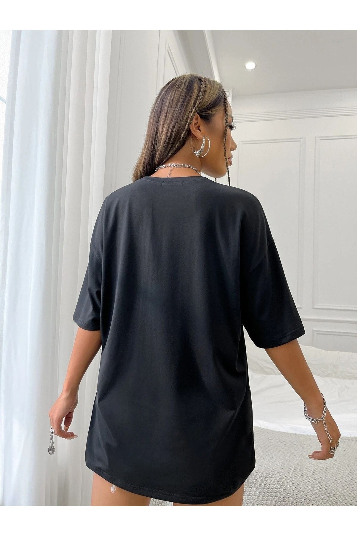 California W.c T-shirt - Siyah Baskılı Oversize Bisiklet Yaka Kısa Kol Tişört