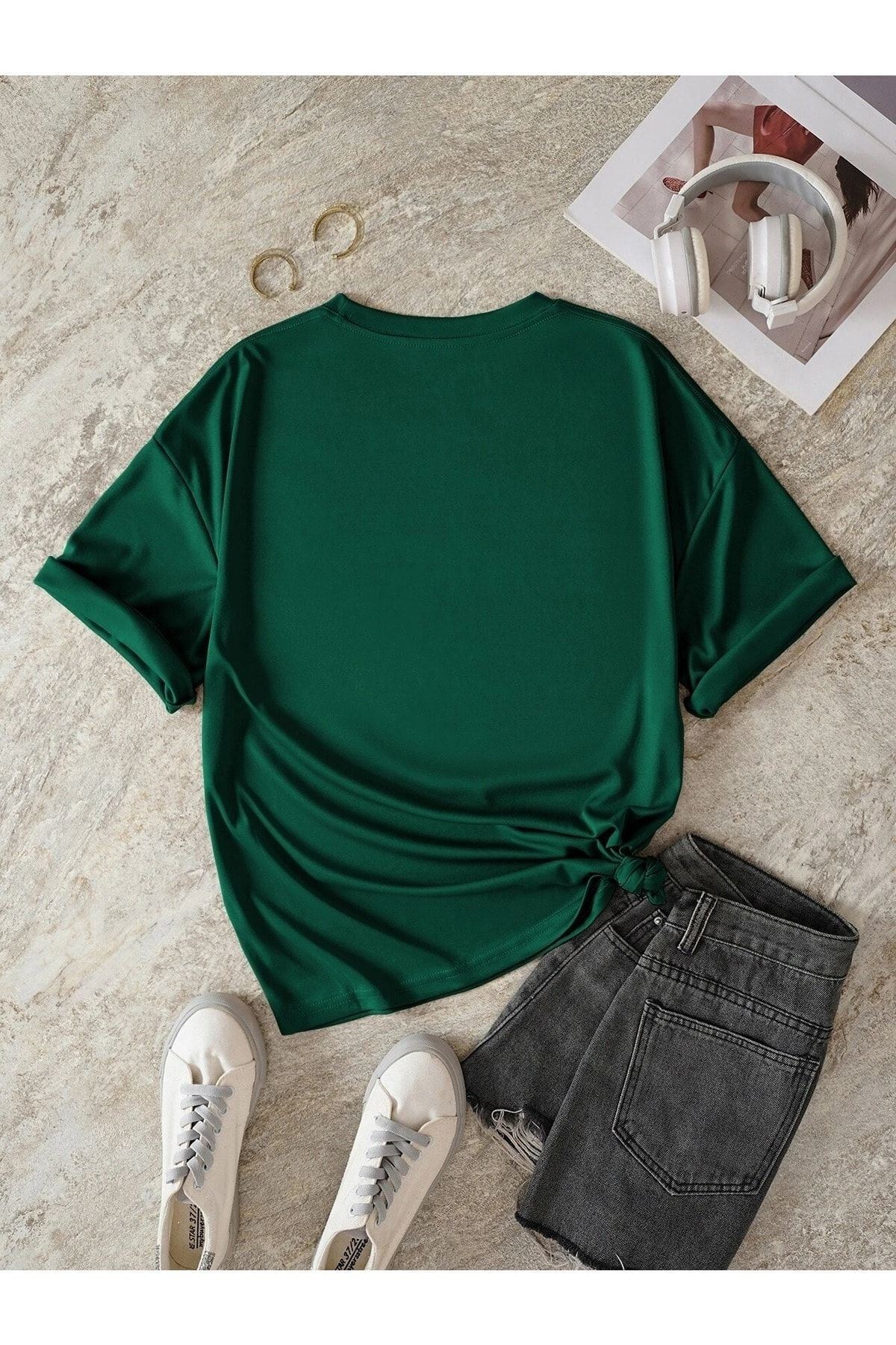 California Wc T-Shirt - Yeşil Baskılı Oversize Bisiklet Yaka Kısa Kol