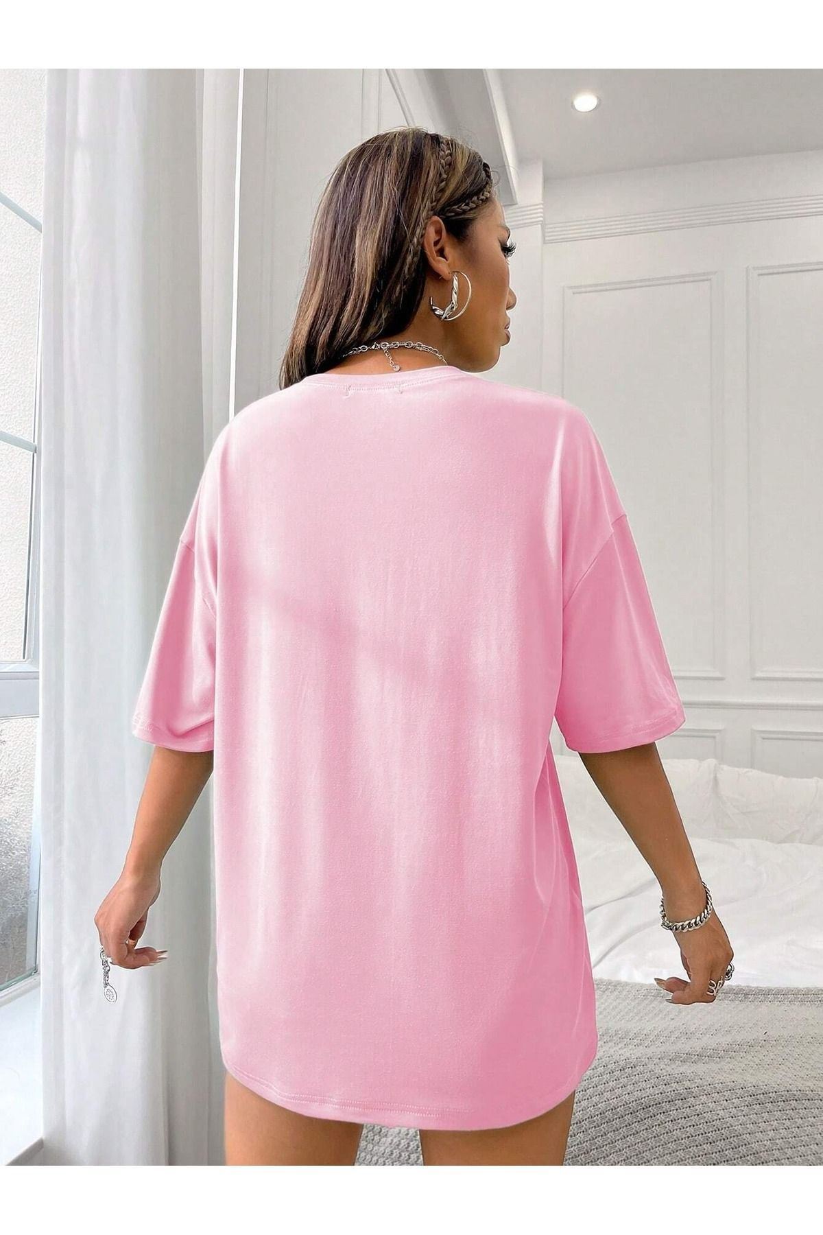 Rahat ve modern bir tarz sunan oversize kalıbı ile günlük kullanım için idealdir; Uzun boy tasarımı sayesinde rahat hareket etme özgürlüğü sağlar; Canlı ve dikkat çekici pembe baskısı ile stilinizi öne çıkarır; Bisiklet yaka kesimi, hem konforlu hem de şık bir görünüm sunar; Tüm yaş gruplarına hitap eden tasarımıyla geniş bir kullanıcı yelpazesine sahiptir; Günlük ortamlarda rahatlıkla tercih edilebilecek bir üründür; Örme kumaş yapısı sayesinde esneklik ve dayanıklılık bir arada sunulur; Askılı kol tipi ile yaz aylarında serinlik ve konfor sağlar;