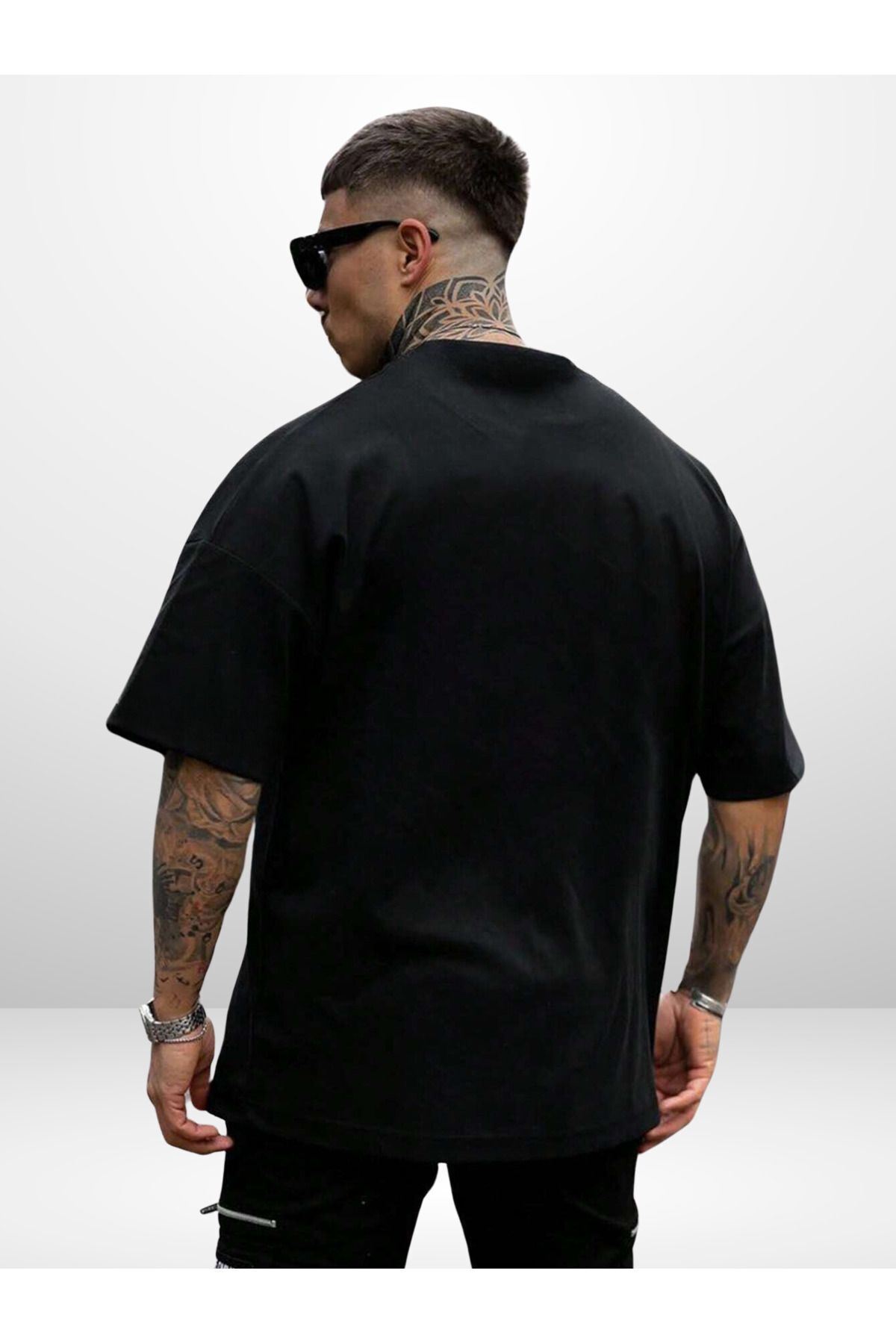 Catch The Style Oversize Siyah Baskılı T-shirt - Bisiklet Yaka Kısa Kol Rahat Kalıp Tişört