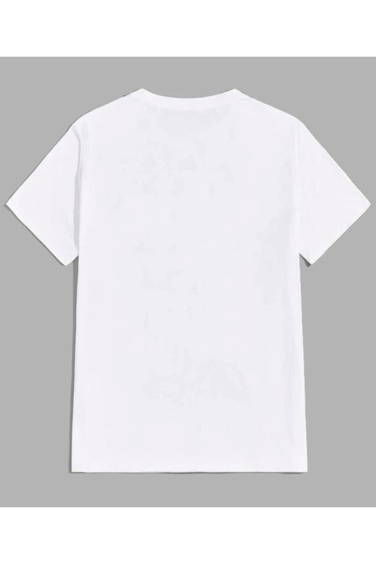 Cherrıes Cosmos Baskılı Süprem Beyaz T-Shirt - Oversize Bisiklet Yaka Tişört