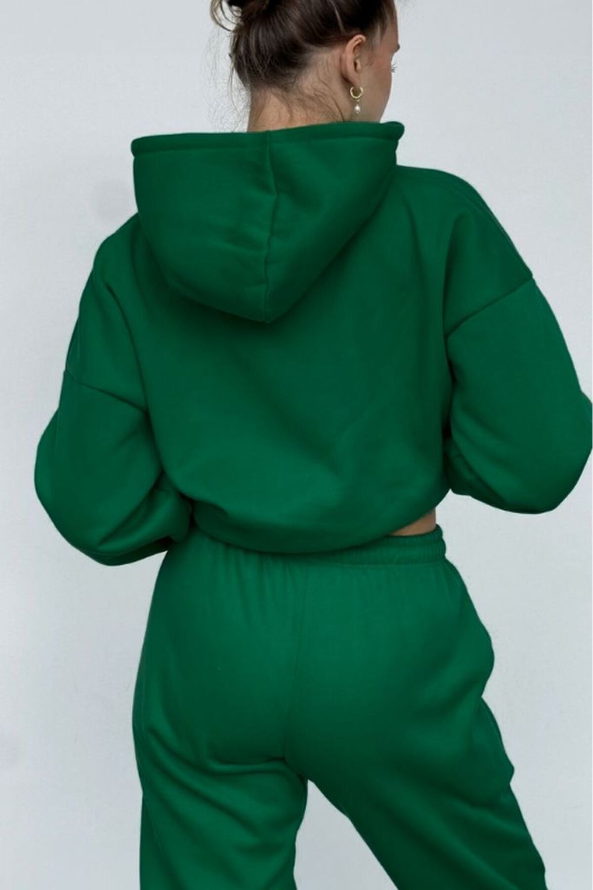 Chicago Eşofman Takımı Sweatshirt Jogger - Yeşil Baskılı Oversize Şardonlu Kapüşonlu