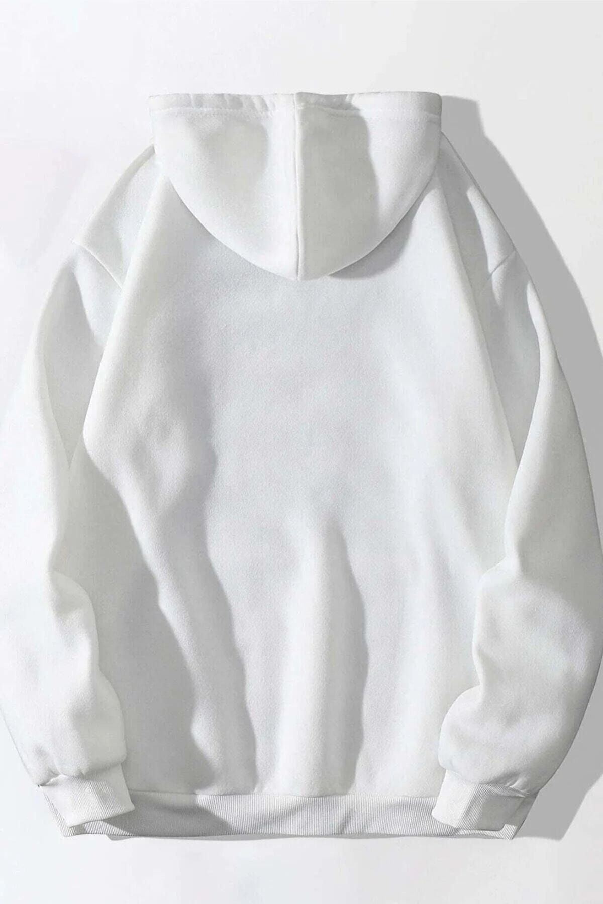 Chicago Yazı Sweatshirt - Beyaz Baskılı Oversize Kapüşonlu