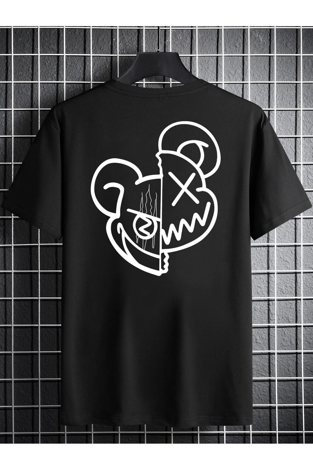 Çİft Yüz Desen Süprem T-Shirt - Siyah Baskılı Oversize Bisiklet Yaka Kısa Kol Tişört