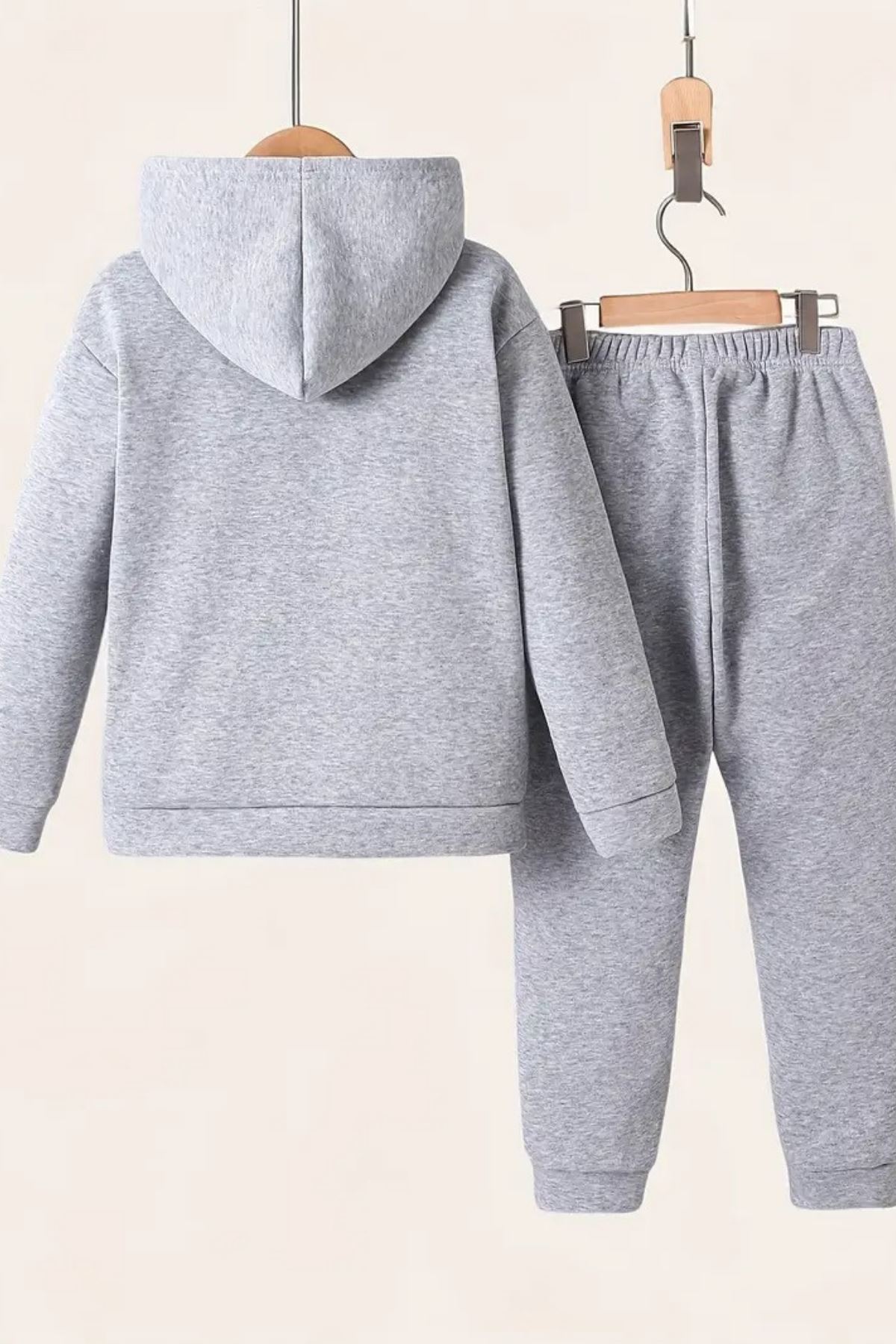 Çocuklar için özel tasarlanan kapüşonlu eşofman takımı, soğuk havalarda maksimum rahatlık ve sıcaklık sağlar.; Yumuşak iç dokusu sayesinde gün boyu konforlu kullanım sunar.; Esnek bel lastiği ve rahat kalıbı ile hareket özgürlüğü verir.; Hem evde hem dışarıda kullanıma uygun olan bu ikili set, kış aylarının vazgeçilmez parçalarından biridir.