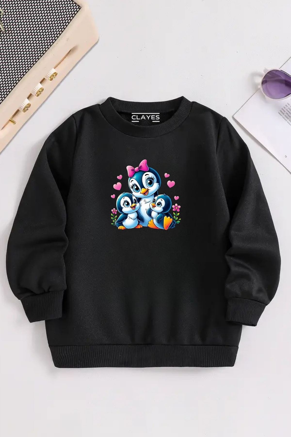 Çocuk Siyah Bisiklet Yaka 3 LÜ PENGUEN Baskılı, Kışlık Kalın Şardonlu Kumaş
