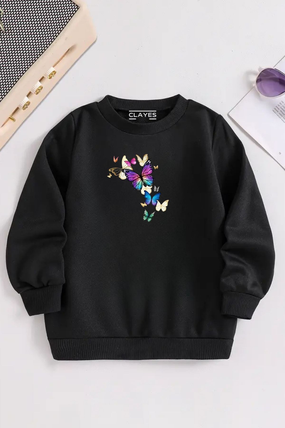 Çocuk Siyah Bisiklet Yaka KELEBEKLER Baskılı, Kışlık Kalın Şardonlu Kumaş