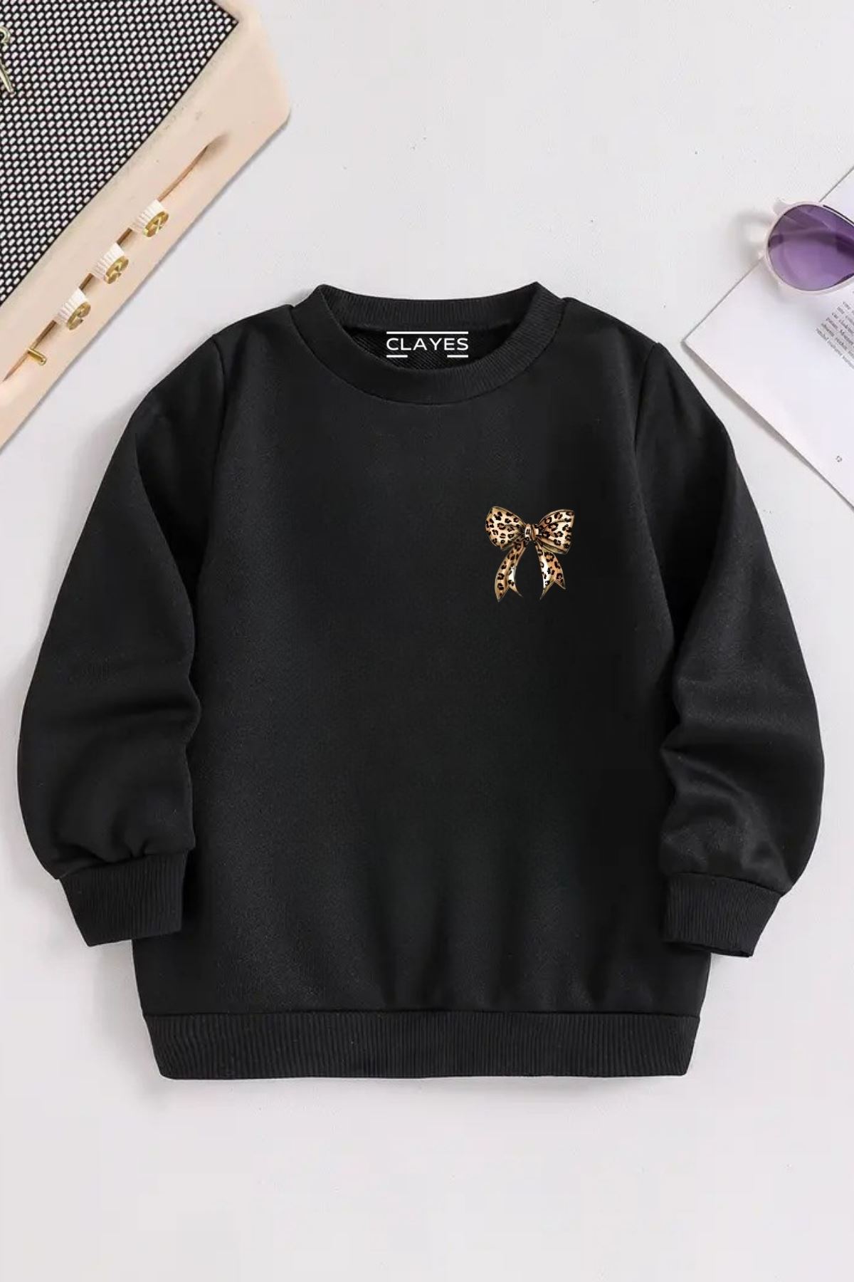 Çocuk Siyah Bisiklet Yaka KURDELA LEOPAR MİNİMAL Baskılı, Kışlık Kalın Şardonlu Kumaş
