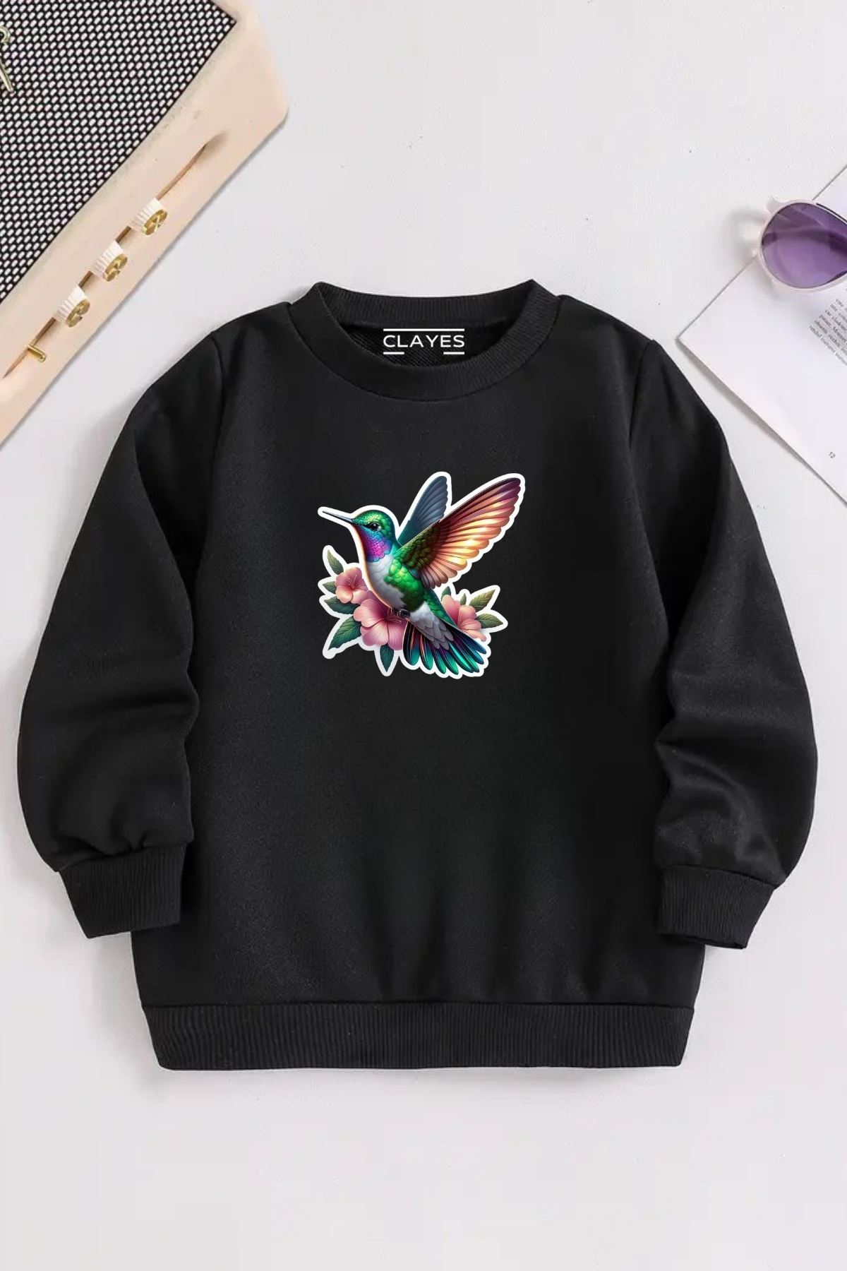 Çocuklar için hem şık hem de konforlu bir tercih olan siyah bisiklet yaka sweatshirt, günlük kullanıma uygun yapısıyla öne çıkıyor.; Yumuşak dokulu kumaşı sayesinde ciltte tahriş yapmaz, hareket özgürlüğü sunar.; Hem okulda hem dışarıda rahatça giyilebilir.