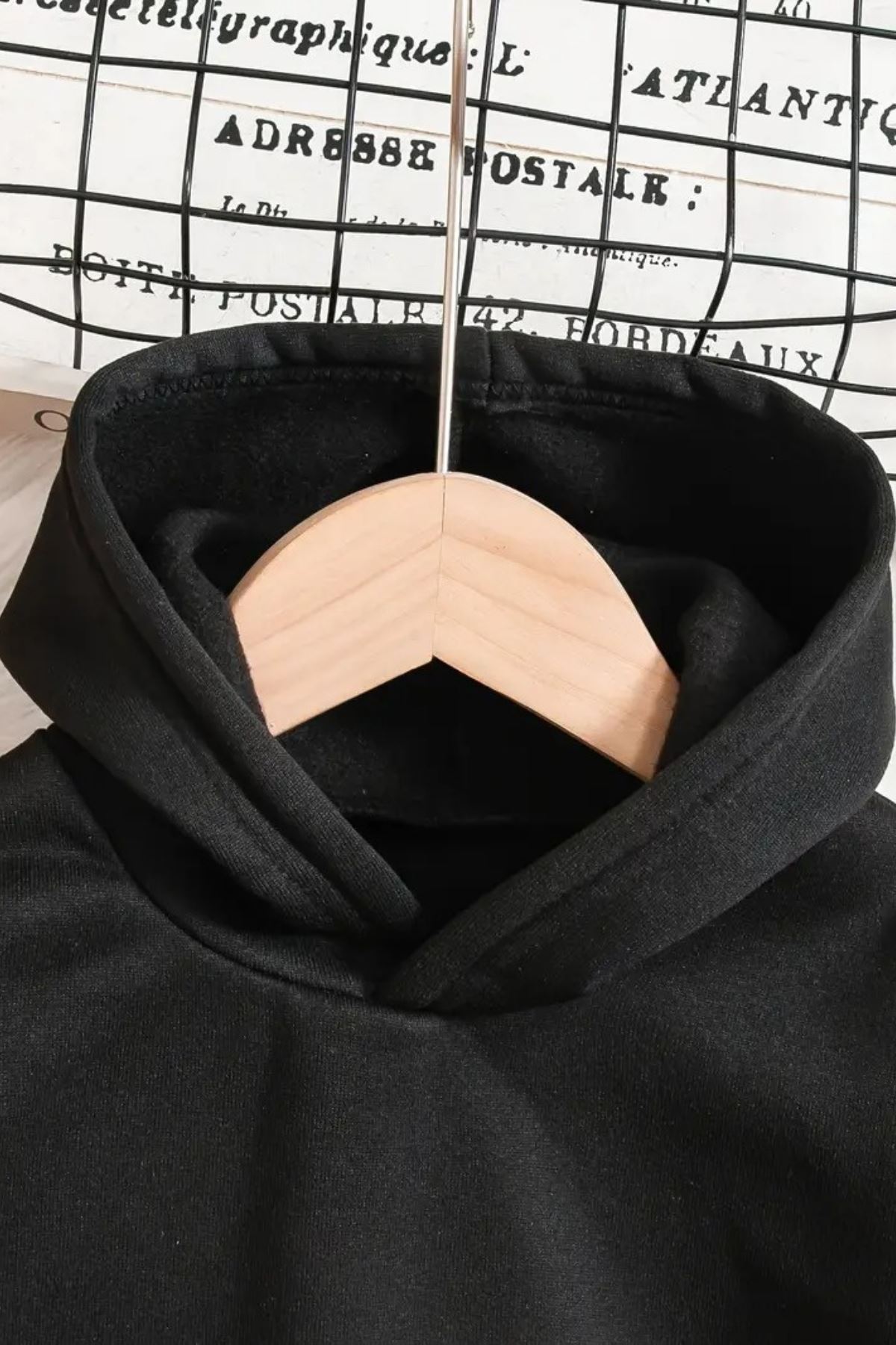 Çocuk Siyah Eşofman Takımı-ERİYEN KALP Baskılı-Şardonlu Kumaş