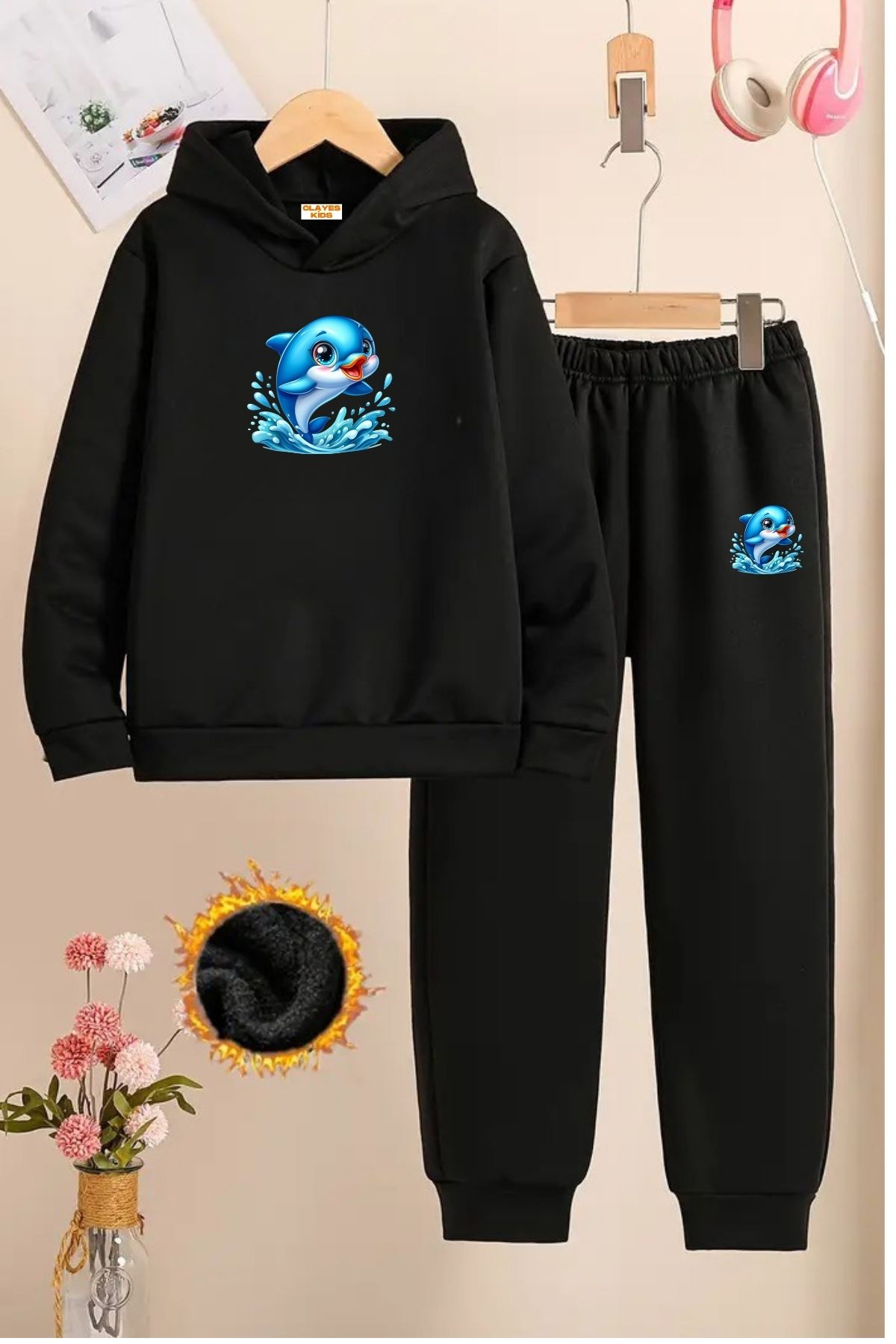 Çocuk Siyah Eşofman Takımı-YUNUS Baskılı-Şardonlu Kumaş