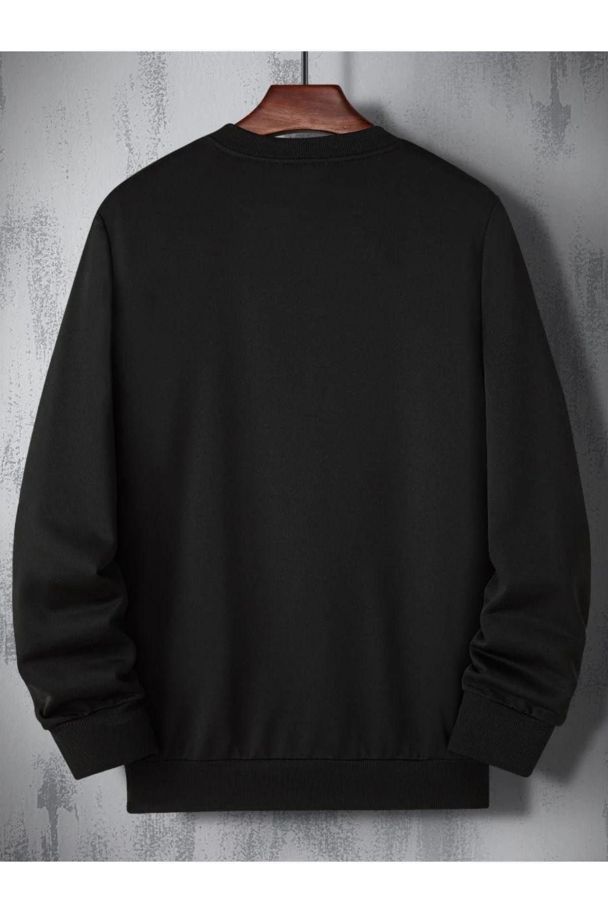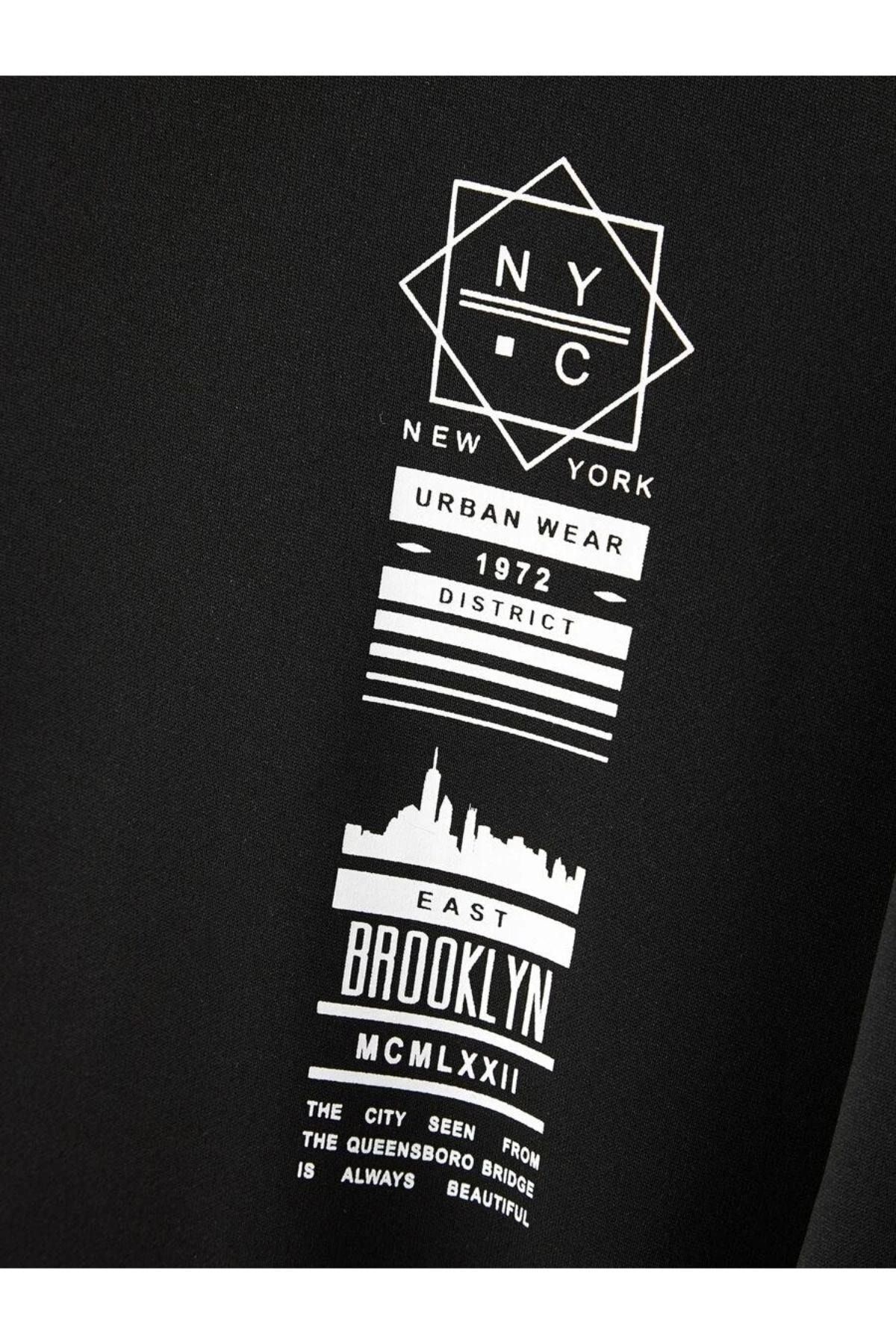 Dikey Nyc Brooklyn Sweatshirt - Siyah Baskılı Oversize Bisiklet Yaka