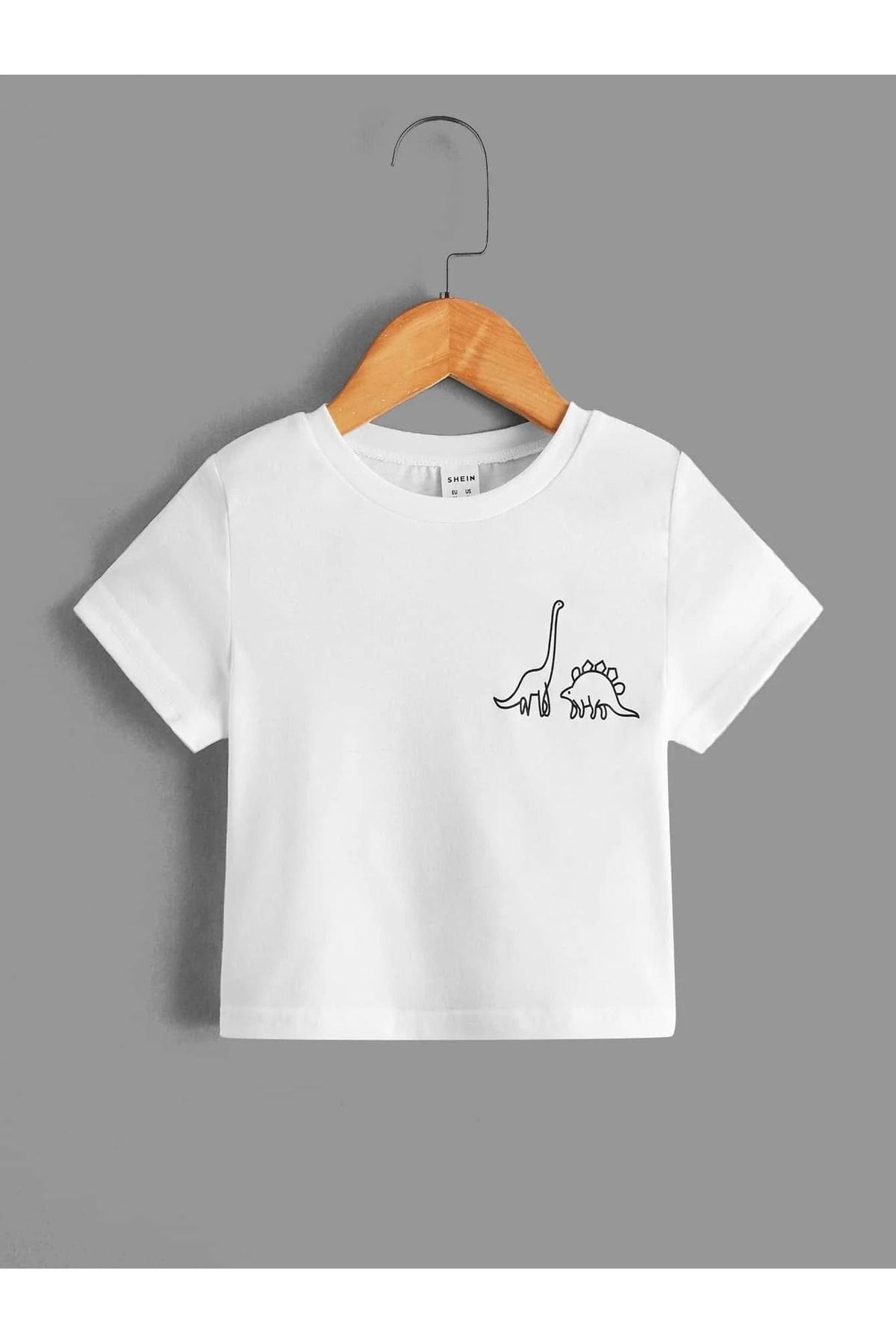 Dinazorlar Pamuklu Çocuk T-Shirt- Beyaz Baskılı Kız Erkek Çocuk Yazlık Bisiklet Yaka Tişört