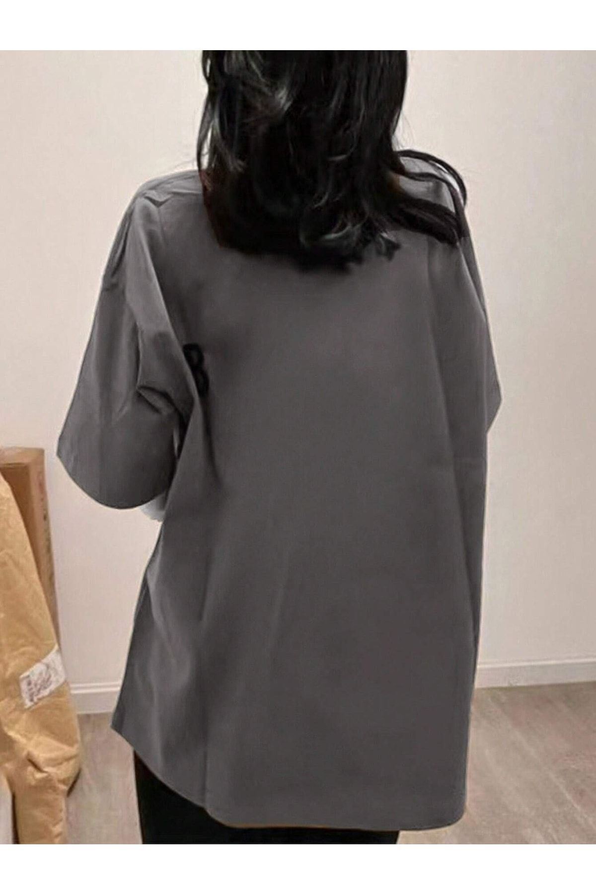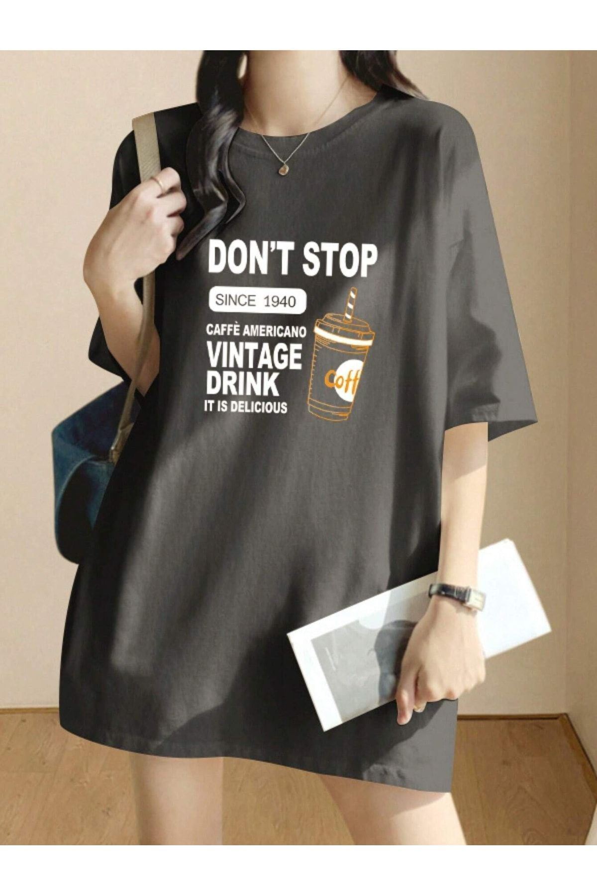 Dont Stop T-shirt - Füme Baskılı Oversize Bisiklet Yaka Kısa Kol Tişört